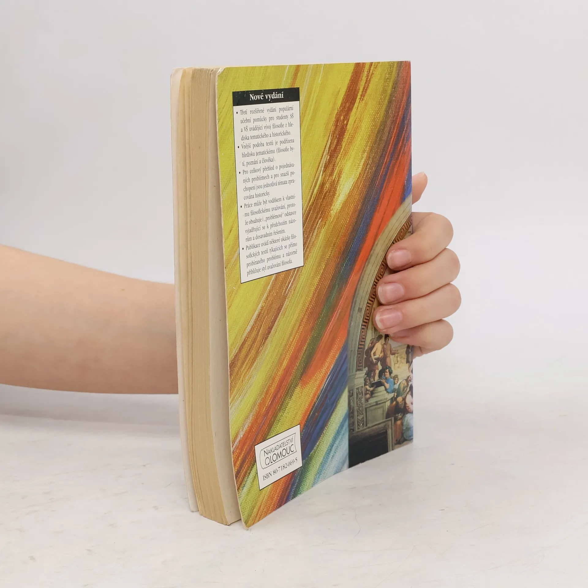 Populární učební pomůcka pro studenty SŠ a VŠ uvádějící vývoj filosofie z hlediska tematického a historického. Vnější podoba textů je podřízena hledisku tematickému (filosofie bytí, poznání a člověka). Pro celkový přehled o pojednávaných problémech a pro snazší pochopení jsou jednotlivá témata zpracována historicky. Práce může být i vodítkem k vlastnímu filosofickému uvažování čtenářů, protože obsahuje i „problémové“ odstavce vyjadřující se k předchozím názorům a dosavadním řešením. Publikace uvádí některé ukázky filosofických textů (v příloze Malá čítanka filosofických textů) týkající se přímo probíraného problému a názorně přibližuje styl uvažování daného filosofa.