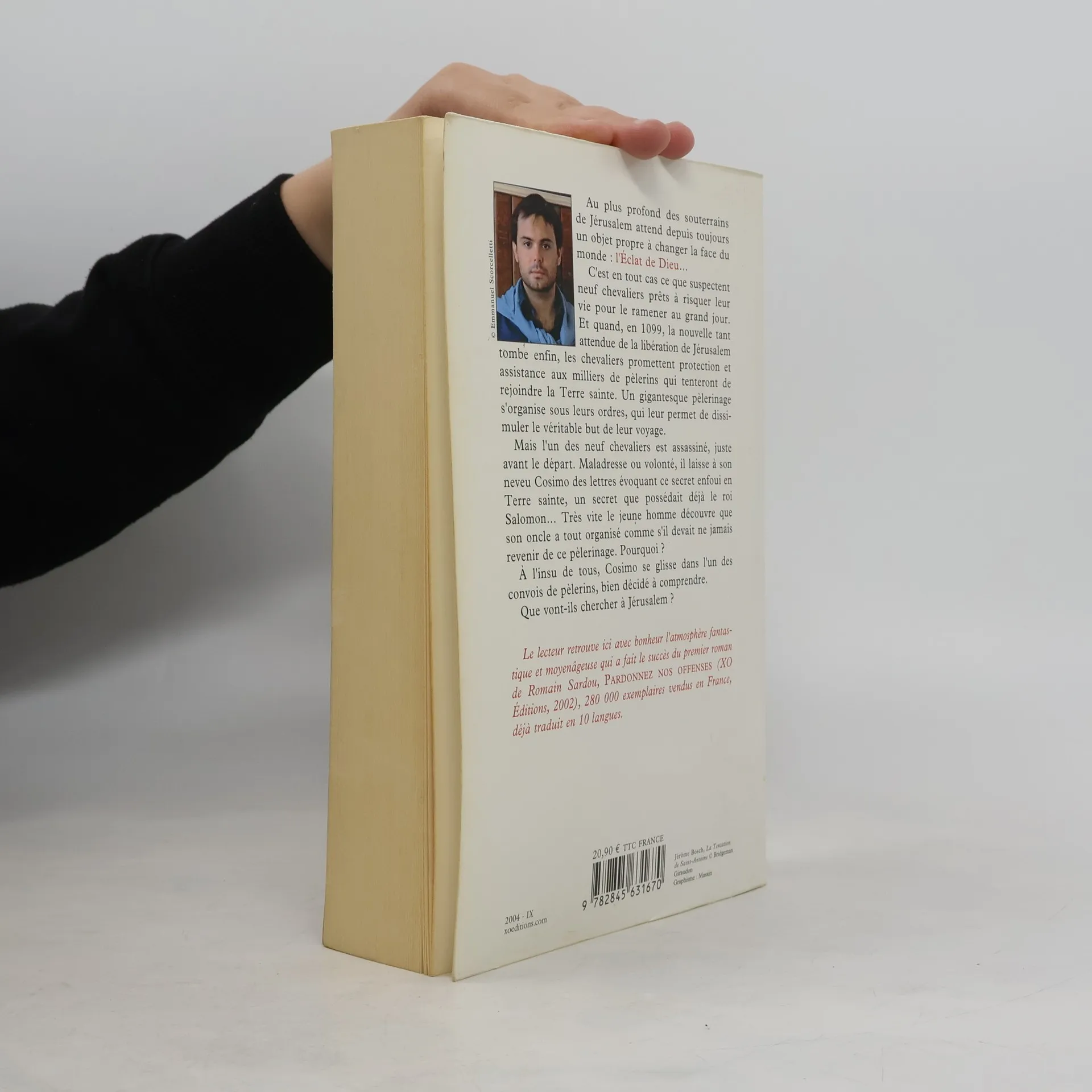 Au plus profond des souterrains de Jérusalem attend depuis toujours un objet propre à changer la face du monde : l'Éclat de Dieu... C'est en tout cas ce que suspectent neuf chevaliers prêts à risquer leur vie pour le ramener au grand jour. Et quand, en 1099, la nouvelle tant attendue de la libération de Jérusalem tombe enfin, les chevaliers promettent protection et assistance aux milliers de pèlerins qui tenteront de rejoindre la Terre sainte. Un gigantesque pèlerinage s'organise sous leurs ordres, qui leur permet de dissimuler le véritable but de leur voyage. Mais l'un des neuf chevaliers est assassiné, juste avant le départ. Maladresse ou volonté, il laisse à son neveu Cosimo des lettres évoquant ce secret enfoui en Terre sainte, un secret que possédait déjà le roi Salomon... Très vite le jeune homme découvre que son oncle a tout organisé comme s'il devait ne jamais revenir de ce pèlerinage. Pourquoi ? À l'insu de tous, Cosimo se glisse dans l'un des convois de pèlerins, bien décidé à comprendre. Que vont-ils chercher à Jérusalem ?