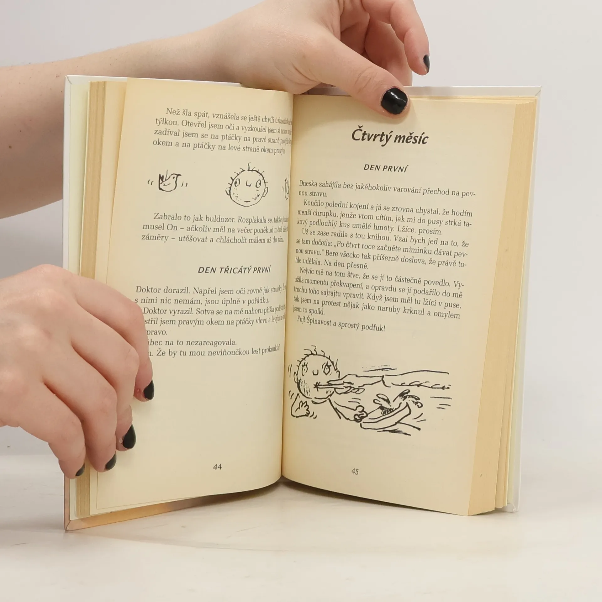 Jste zkušení rodiče, kteří si myslí, že vědí, co jejich batole potřebuje: jíst, spát, pochovat a vyměnit plenky. Nebo se rozplýváte nad prvním miminkem a domníváte se, že váš instinkt vám říká, co si přeje. Jste na omylu. Batolata nejsou roztomilá a bezbranná, ale cílevědomá stvoření, která se vám smějí, ale neprozradí se, protože je to pro ně výhodné. Tato kniha vám otevře oči a ukáže, že každé dítě je od narození prevít. Je třeba být neustále ve střehu a nepodléhat jeho lstivým úsměvům, nemotorným pohybům a sladkému broukání. A nestěžujte si, že jsme vás nevarovali. Ukázka: DEN DVACÁTÝ DEVÁTÝ Dnes ráno jsem měl úspěšný zásah. Na pohovce ležela kočka, a já se jako červ sunul k stolku se skleněnou vázou. Popadl jsem ji za nohu a začal třást. Po chvíli se váza začala sunout, až spadla a rozbila se. Po koberci se rozlilo jezero vody. Rychle jsem se dostal na druhou stranu pokoje a vzal si chrastítko ve tvaru lízátka, které mi ona vnucovala už pět měsíců. Strčil jsem si ho do pusy a začal žvýkat. Sotva jsem se ustavil, už tu byla Ona. Když viděla rozbitou vázu, byla zběsilá a koukala mezi kočkou a mnou. Naštěstí dospěla k správnému závěru. Kočka dostala pěkně natřískáno a vytrhla se do noci bez večeře. Hihihi.