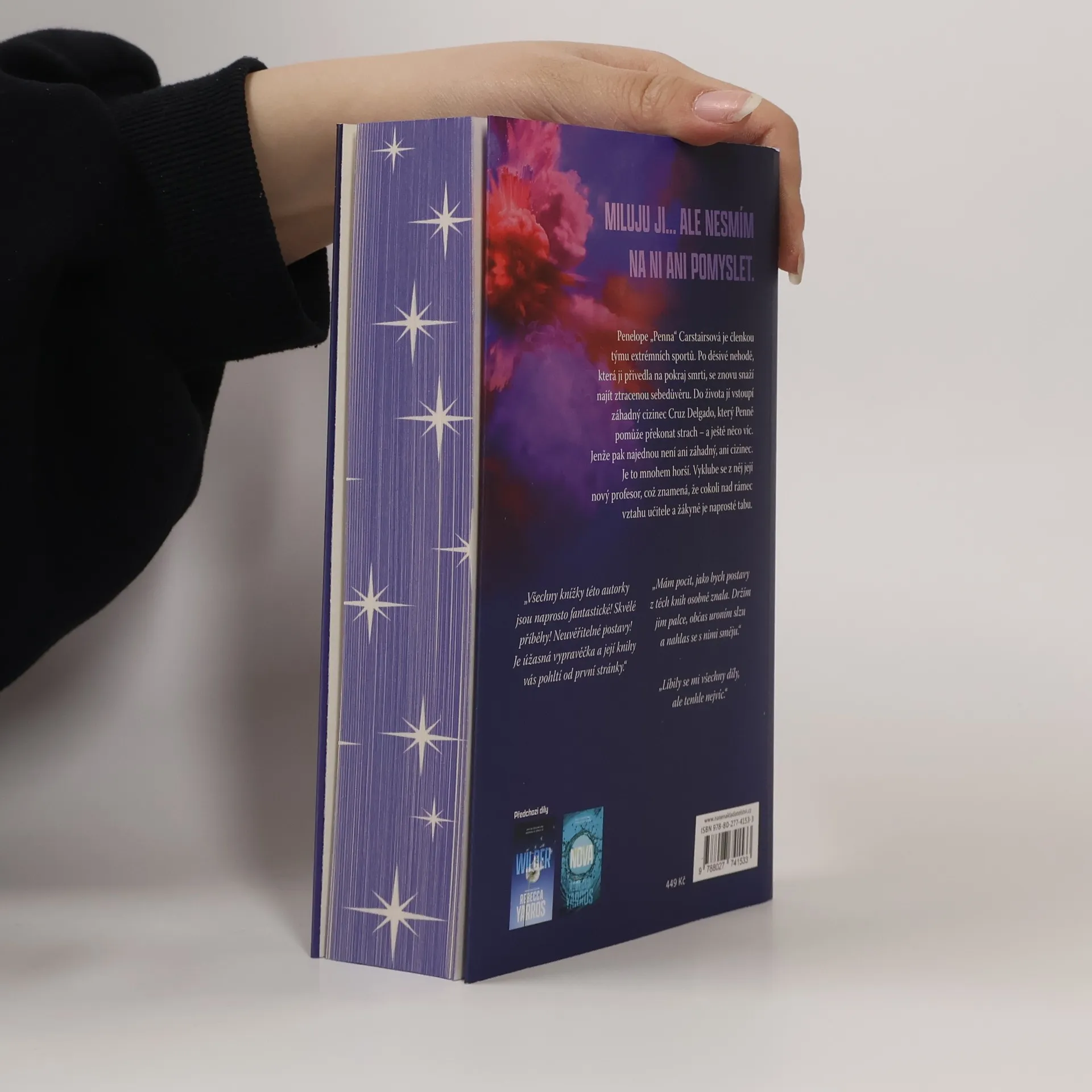 Jmenuje se Penna Carstairsová. Patří mezi Odpadlíky a říkají jí Rebelka. Renomovaný sportovní časopis ji jmenoval nejvíce sexy sportovkyní roku. V extrémním sportu neexistuje pravidlo, které by neporušila, z genderových předsudků si denně dělá legraci. Potkal jsem ji v jednom baru ve Vegas. Ilegálně jsem s ní skočil padákem z ruského kola. Strávili jsme spolu jedinou šílenou, neskutečnou noc. Jenže teď jsem v háji. Protože ta žena, kterou nemůžu dostat z hlavy, je zároveň jedinou, jíž se už nikdy nemůžu znovu dotknout. Jsem Dr. Cruz Delgado – nejmladší profesor na tomto kampusu. A Penelope Carstairsová právě vstoupila do mé třídy.