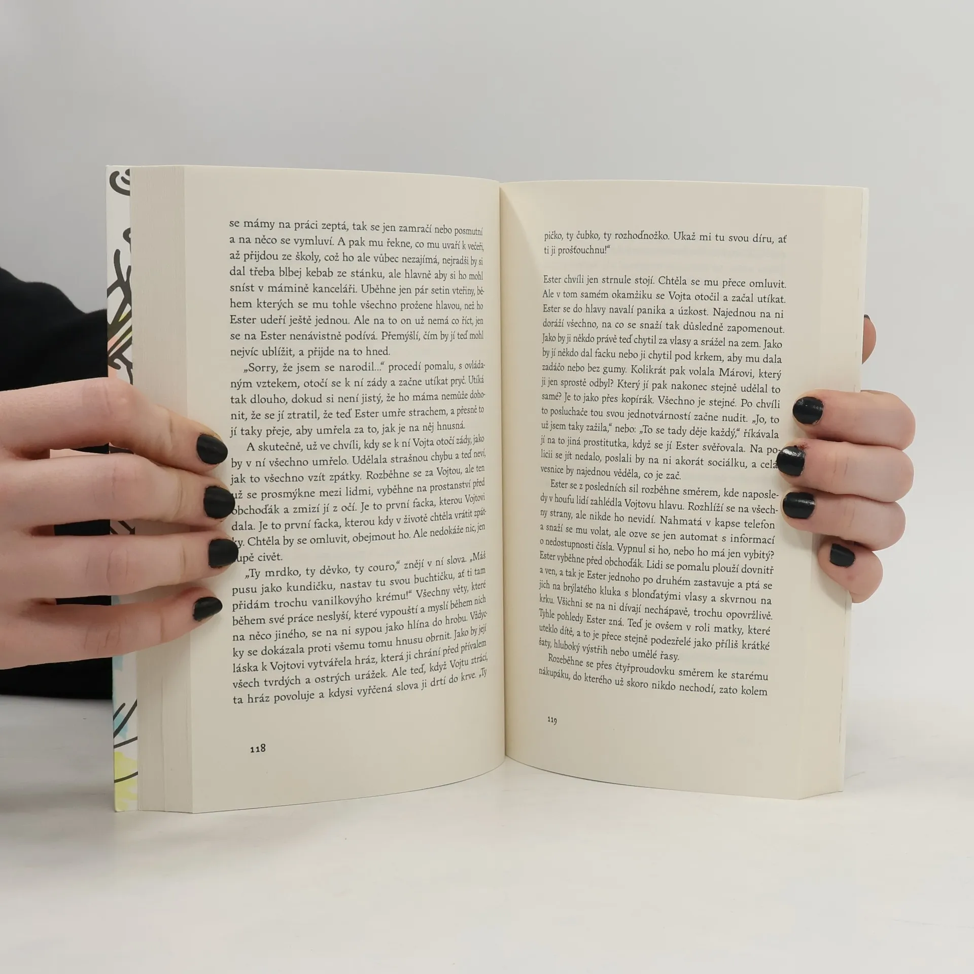 Ester je obyčejná rozvedená matka, samoživitelka. Tedy až na to, že se živí prostitucí, kterou před svým okolím důkladně tají, stejně jako osudový karambol, který ji do této pasti dotlačil. Se synem žije na Vysočině, v domě po babičce, na niž často vzpomíná pro její laskavost, ale i poněkud svazující bigotní víru. Za stresujícím výdělkem pak Ester dojíždí k hraničnímu přechodu Hatě, do bizarního světa plného kasin, nevěstinců, tržnic a různých atrakcí, kde se nabízí pod hrubým dohledem pasáka Máry. A právě tady se stane další nečekaná nehoda, která definitivně vykolejí směr jejího života. Je to ve spirále manipulace, násilí a špatných rozhodnutí krok k lepšímu, nebo k horšímu? Ester spíš přežívá, než žije a má vlastně jen jediný důvod jít dál — jedenáctiletého Vojtu. Co by se stalo, kdyby se o ní Vojta dozvěděl celou pravdu? K jakým vírám se upínáme, abychom ustáli turbulence osudu? A jak nás promění světlo před prahem smrti? I o tom je prozaická novinka úspěšné spisovatelky a umělkyně mnoha různých talentů.