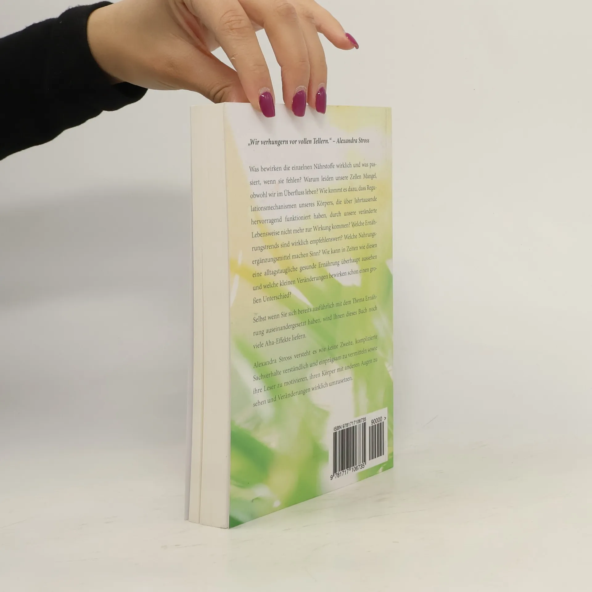 "Wir verhungern vor vollen Tellern." Alexandra Stross. Was bewirken die einzelnen Nährstoffe wirklich und was passiert, wenn sie fehlen? Warum leiden unsere Zellen Mangel, obwohl wir im Überfluss leben? Wie kommt es dazu, dass Regulationsmechanismen unseres Körpers, die über Jahrtausende hervorragend funktioniert haben, durch unsere veränderte Lebensweise nicht mehr zur Wirkung kommen? Welche Ernährungstrends sind wirklich empfehlenswert? Welche Nahrungsergänzungsmittel machen Sinn? Wie kann in Zeiten wie diesen eine alltagstaugliche gesunde Ernährung überhaupt aussehen und welche kleinen Veränderungen bewirken schon einen großen Unterschied? Selbst wenn Sie sich bereits ausführlich mit dem Thema Ernährung auseinandergesetzt haben, wird Ihnen dieses Buch noch viele Aha-Effekte liefern. Alexandra Stross versteht es wie keine Zweite, komplizierte Sachverhalte verständlich und einprägsam zu vermitteln sowie Ihre Leser zu motivieren, Ihren Körper mit anderen Augen zu sehen und Veränderungen wirklich umzusetzen.