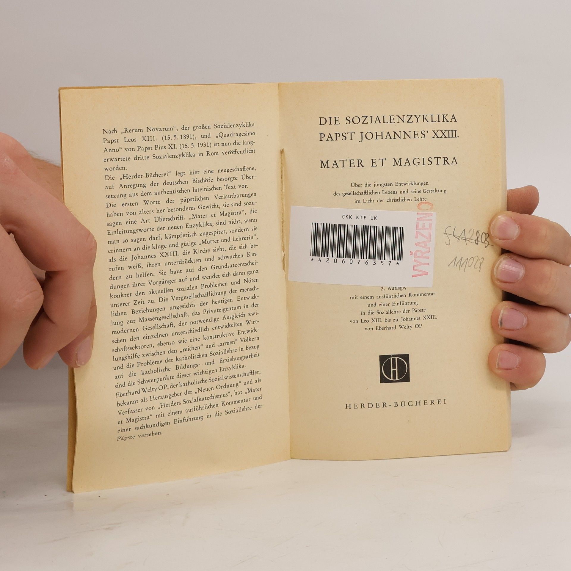 Nous avons un total de du titre Die Sozialenzyklika Papst Johannes' XXIII. Mater et magistra (1964).
