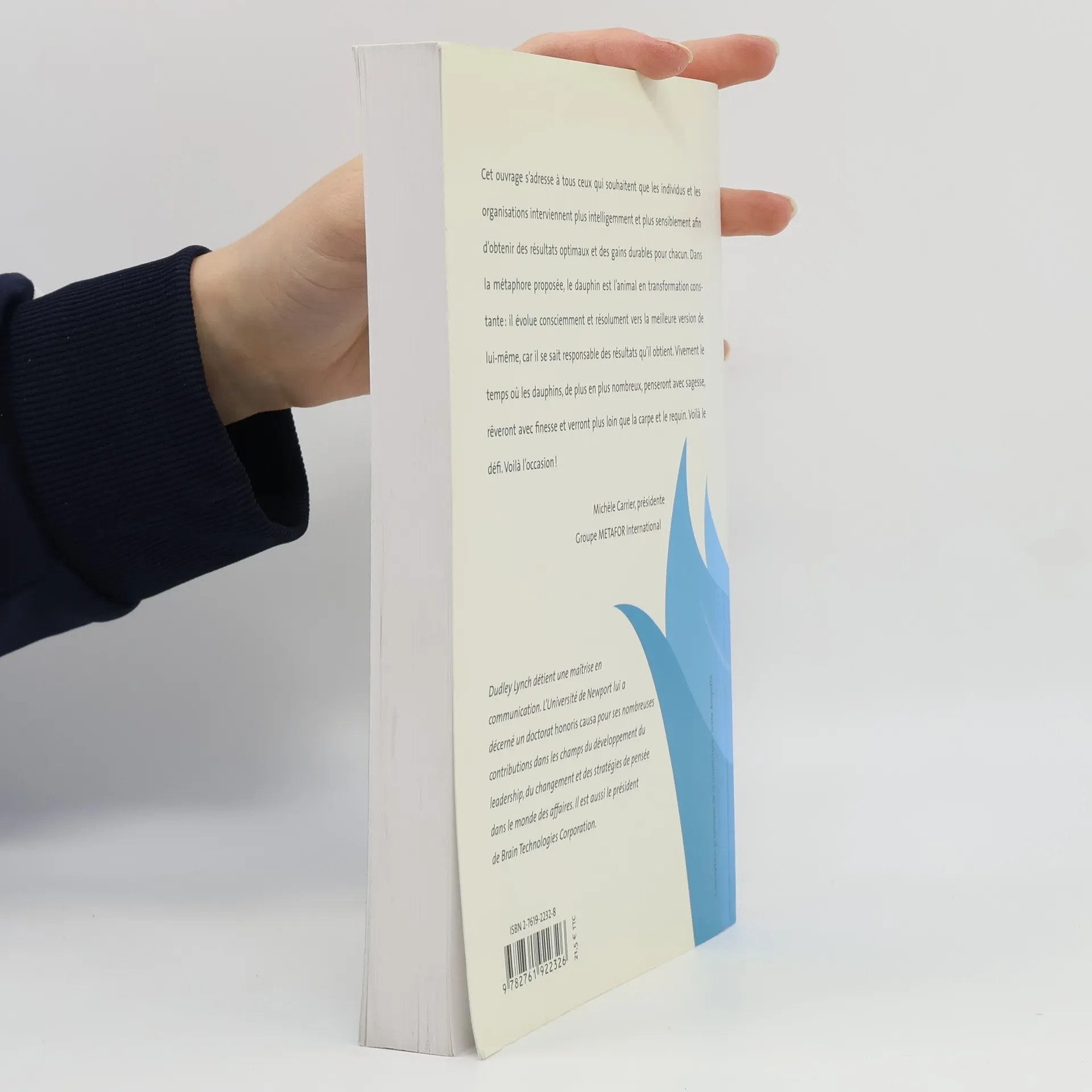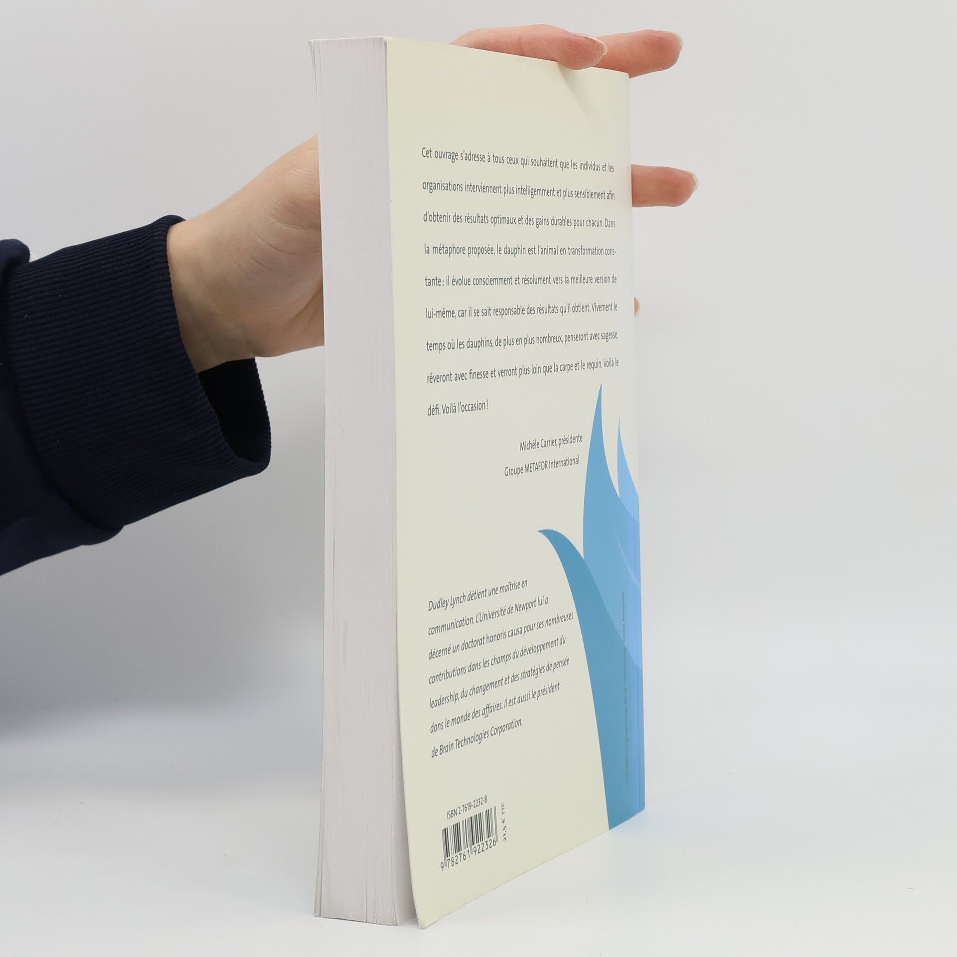 Cet ouvrage s'adresse à tous ceux qui souhaitent que les individus et les organisations interviennent plus intelligemment et plus sensiblement afin d'obtenir des résultats optimaux et des gains durables pour chacun. Dans la métaphore proposée, le dauphin est l'animal en transformation constante : il évolue consciemment et résolument vers la meilleure version de lui-même, car il se sait responsable des résultats qu'il obtient. Vivement le temps où les dauphins, de plus en plus nombreux, penseront avec sagesse, rêveront avec finesse et verront plus loin que la carpe et le requin. Voilà le défi. Voilà l'occasion !