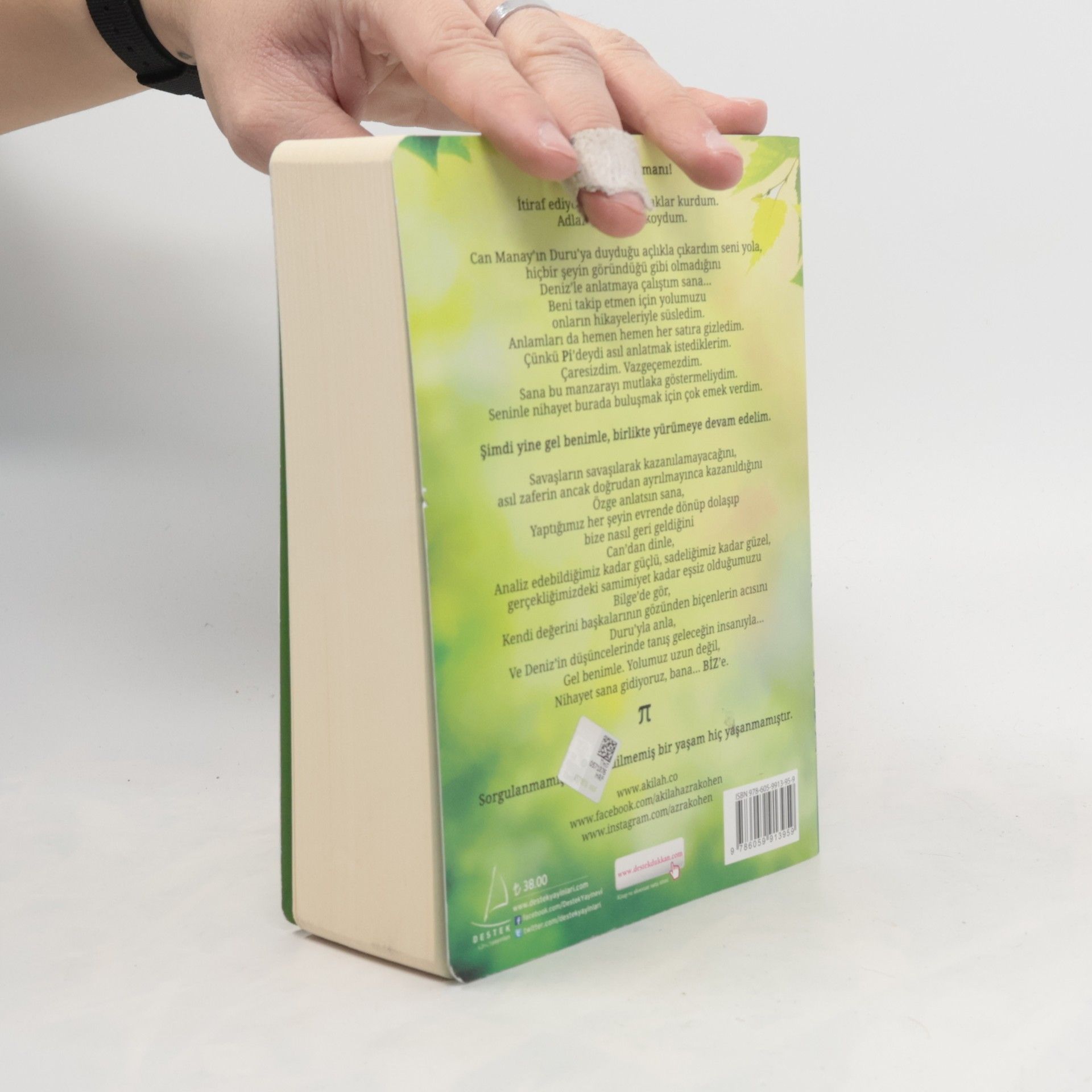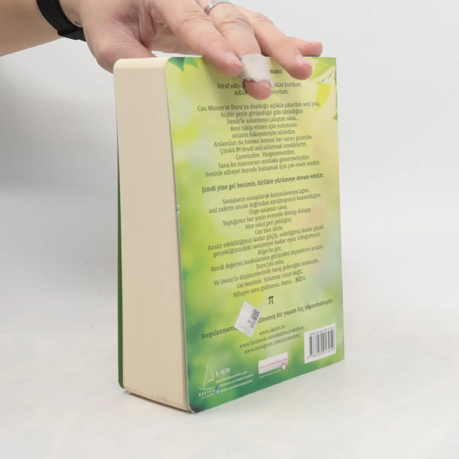 Şimdi itiraf zamanı! İtiraf ediyorum: Sana tuzaklar kurdum. Adlarını Fi ve Çi koydum. Can Manay'ın Duru'ya duyduğu açlıkla çıkardım seni yola, Hiçbir şeyin göründüğü gibi olmadığını Deniz'le anlatmaya çalıştım sana… Beni takip etmen için yolumuzu onların hikâyeleriyle süsledim. Anlamları da hemen hemen her satıra gizledim. Çünkü Pi'deydi asıl anlatmak istediklerim. Çaresizdim. Vazgeçemezdim. Sana bu manzarayı mutlaka göstermeliydim. Seninle nihayet burada buluşmak için çok emek verdim. Şimdi yine gel benimle, birlikte yürümeye devam edelim. Savaşların savaşılarak kazanılamayacağını, asıl zaferin ancak doğrudan ayrılmayınca kazanıldığını Özge anlatsın sana, Yaptığımız her şeyin evrende dönüp dolaşıp bize nasıl geri geldiğini Can'dan dinle, Analiz edebildiğimiz kadar güçlü, sadeliğimiz kadar güzel, gerçekliğimizdeki samimiyet kadar eşsiz olduğumuzu Bilge'de gör, Kendi değerini başkalarının gözünden biçenlerin acısını Duru'yla anla, Ve Deniz'in düşüncelerinde tanış geleceğin insanıyla… Gel benimle. Yolumuz uzun değil, Nihayet sana gidiyoruz, bana… BİZ'e. Sorgulanmamış, analiz edilmemiş bir yaşam hiç yaşanmamıştır.