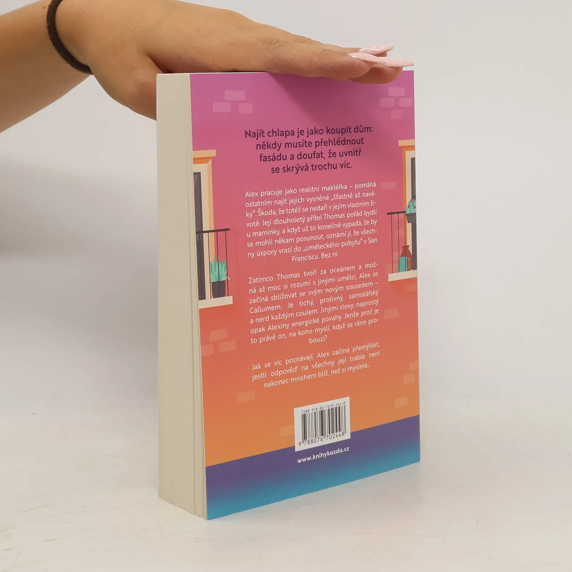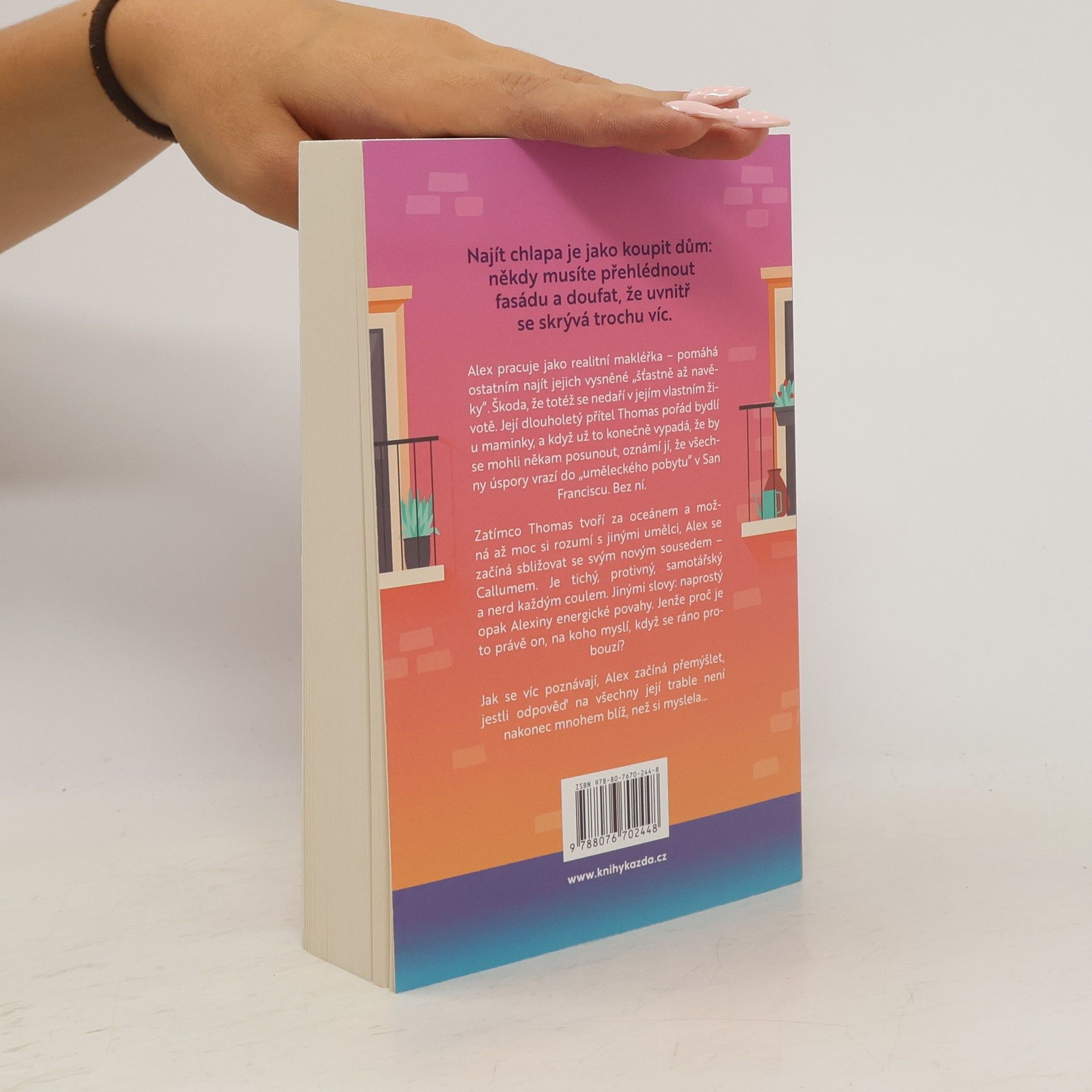 Láska, přátelství a jeden dost komplikovaný nájemní dům. Alex má slušnou práci, přítele s uměleckými ambicemi a nejlepší kamarádku, která už nutně potřebuje vlastní život. Nový byt vypadá jako ideální začátek. Jenže… Život, jak známo, nehraje podle plánu. Sousedi jsou sympatičtější, než by bylo vhodné. Kamarádka se zamiluje rychlostí blesku. A Alexin přítel odjíždí přes půl světa plnit si sny, zatímco Alex začíná tušit, že ty svoje vlastně nikdy moc neřešila. Chytrý, vtipný a velmi civilní román o tom, že na začátku dospělosti často neřešíme, jak vypadá ideální vztah, ale spíš: Kde je doma? S kým tam chci být? A proč má všechno pořád tak trochu jiný klíč, než bych čekala? Pro čtenářky, které mají rády životní příběhy s nadhledem. A s přiznanou slabostí pro dobré sousedy, kávu a křížovky.