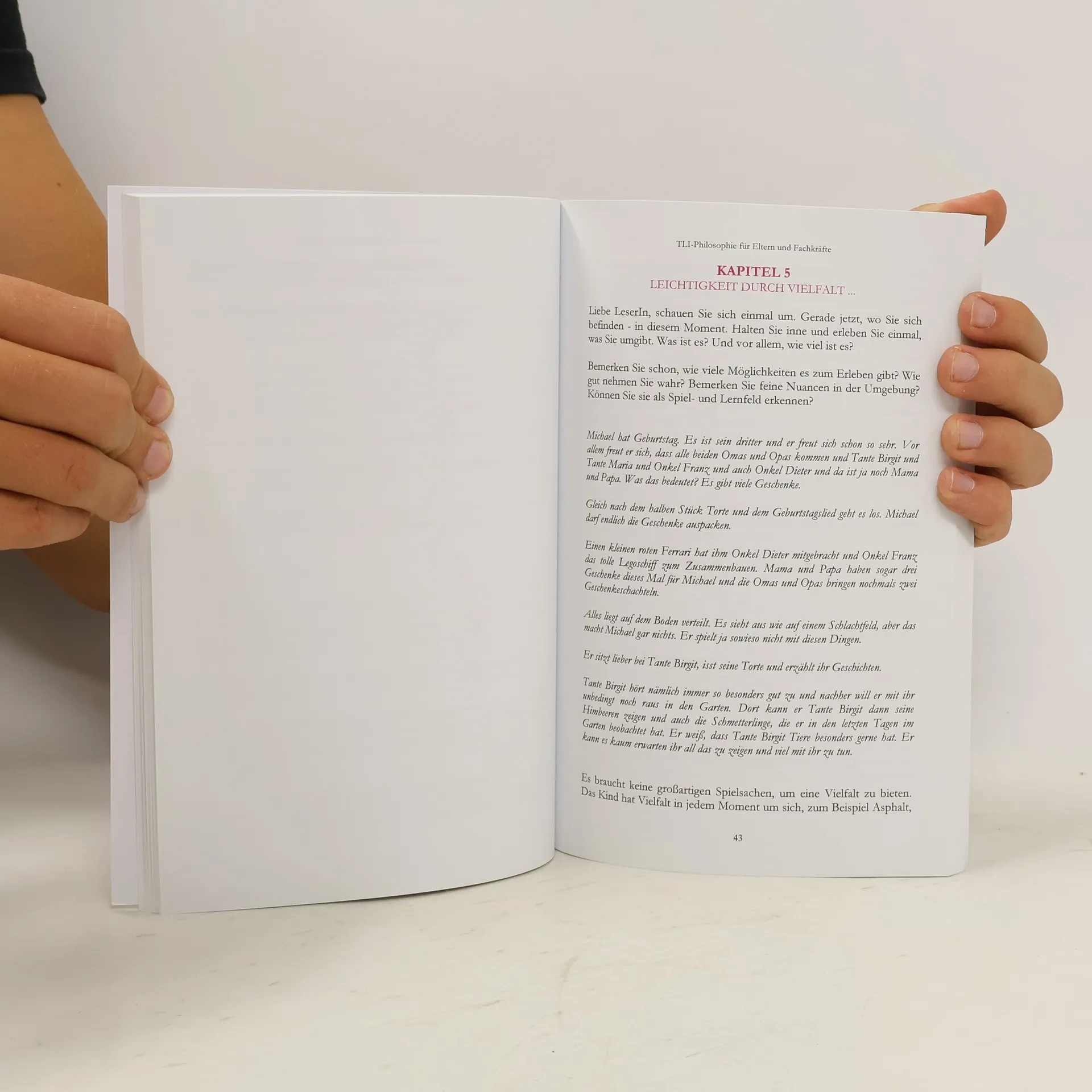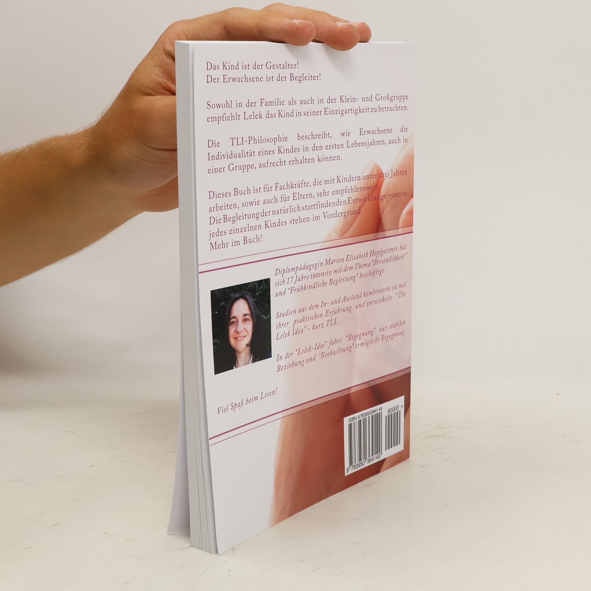 Das Kind ist der Gestalter! Der Erwachsene ist der Begleiter! Regeln, Strukturen und Rahmen existieren. Innerhalb des Rahmens bewegt sich das Kind frei. Sowohl in der Familie als auch in der Klein- und Grossgruppe empfiehlt Lelek das Kind in seiner Einzigartigkeit zu betrachten. Die TLI-Philosophie beschreibt, wie Erwachsene die Individualitat eines Kindes in den ersten Lebensjahren, auch in einer Gruppe, aufrecht erhalten konnen. Die Begleitung der naturlich stattfindenden Entwicklungsprozesse jedes einzelnen Kindes stehen im Vordergrund. Mehr im Buch! Marion Elisabeth Hopfgartner, hat sich 17 Jahre intensiv mit dem Thema "Personlichkeit" und "Fruhkindliche Begleitung" beschaftigt. Studien aus dem In- und Ausland kombinierte sie mit ihrer praktischen Erfahrung und entwickelte "The Lelek Idea" - kurz TLI. In der "Lelek-Idee" fuhrt "Begegnung" zur stabilen Beziehung und "Beobachtung" ermoglicht Begegnung. Die Idee will dem Kind in den ersten Lebensjahren in unserer modernen, dynamischen Zeit das Kind sein erhalten. Die neue, innovative Kleinkindpadagogik setzt dort an, wo das Kind naturlich sein kann. Lebensnah ... mit Erfahrungen ... mit Leichtigkeit ... und durch die Vielfalt zielt dieses Modell auf kindbewusstes Agieren ab. Viel Spass beim Lesen!"