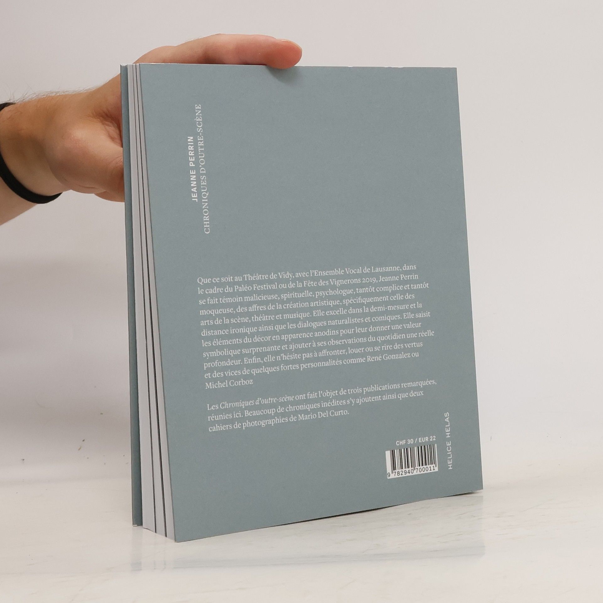 Dans les milieux culturels suisses romands, au Théâtre de Vidy ou avec l’Ensemble Vocal de Lausanne, Jeanne Perrin se fait témoin malicieuse, spirituelle, psychologue, complice et moqueuse, des affres de la création artistique, spécifiquement celle des arts de la scène, du théâtre et de la musique.
