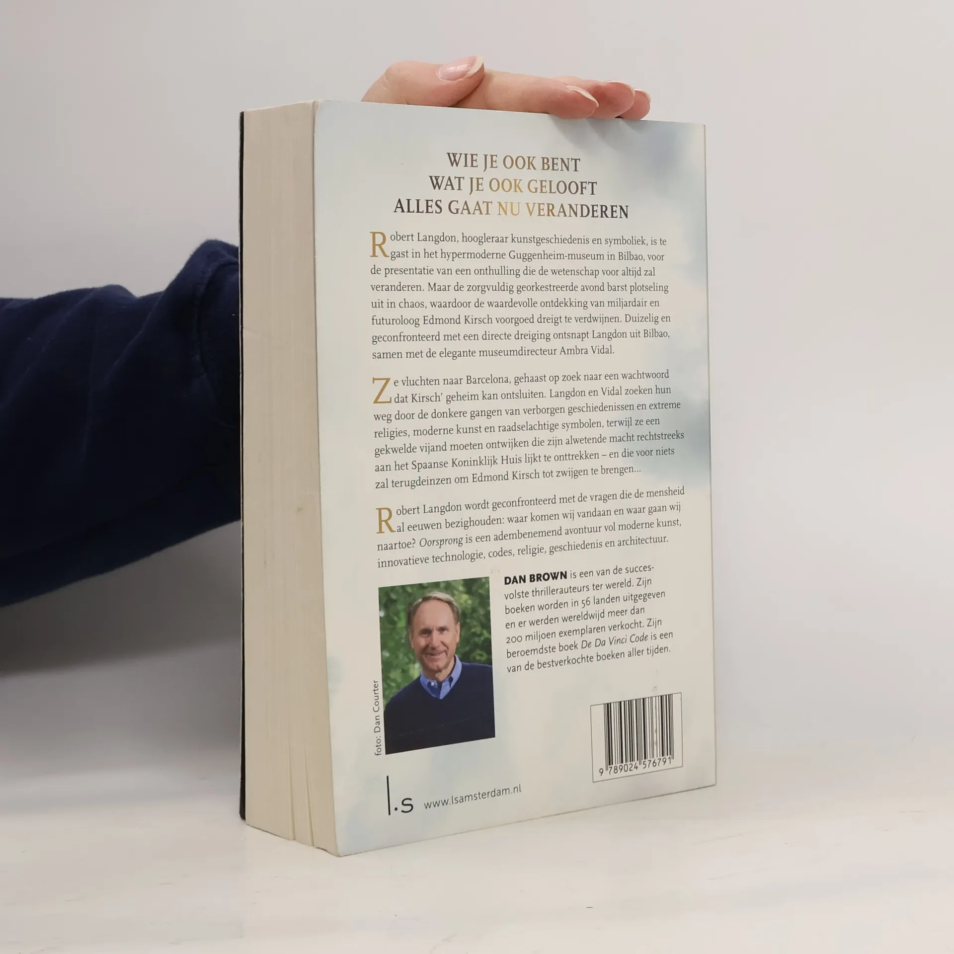 Oorsprong speelt zich af in Madrid, Barcelona, Bilbao en Sevilla, zit vol moderne kunst, innovatieve technologie, geschiedenis en architectuur en draait om de belangrijkste vragen ooit: die naar onze herkomst en onze toekomst. Bilbao, het Guggenheim. Robert Langdon, hoogleraar kunstgeschiedenis en symboliek, is te gast bij de spectaculaire onthulling van Edmond Kirsch' ontdekking. Kirsch, een wereldberoemde, controversiële miljardair en futurist, claimt dat zijn ontdekking de wetenschap voor altijd zal veranderen, maar de onthulling ontaardt in chaos. Langdon weet ternauwernood te ontsnappen samen met Ambra Vidal, de elegante museumdirecteur. Ze vinden tegenover zich een bijna alwetende vijand met banden naar het Spaanse koningshuis en moeten, vertrouwend op hun gebundelde kennis, in een race tegen de klok symbolen, moderne kunst, extreme religies en verborgen geschiedenissen weten te doorgronden om Kirsch' schokkende geheim te ontsluiten. En de adembenemende waarheid die ons tot nu toe is ontgaan, onder ogen te zien...