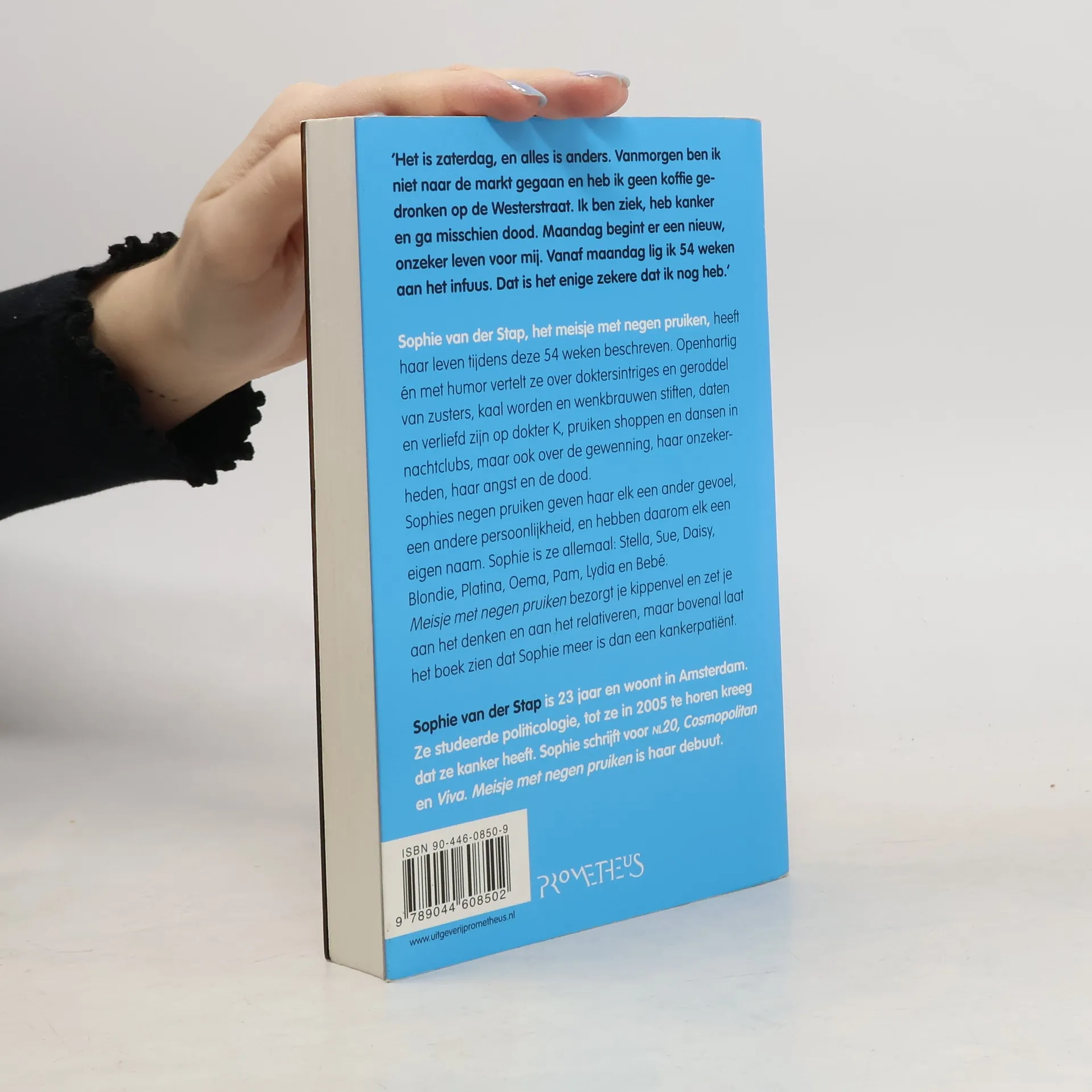'Ik ben ziek, heb kanker en ga misschien dood. Maandag begint er een nieuw, onzeker leven voor mij. Vanaf maandag lig ik 54 weken aan het infuus. Dat is het enige zekere dat ik nog heb.' In 2005 werd bij de toen 21-jarige Sophie van der Stap een ernstige vorm van kanker geconstateerd. Over de 54 weken waarin ze vocht voor haar leven, schreef ze het ontroerende boek Meisje met negen pruiken, dat een groot succes werd en dat ook in Duitsland een bestseller is.