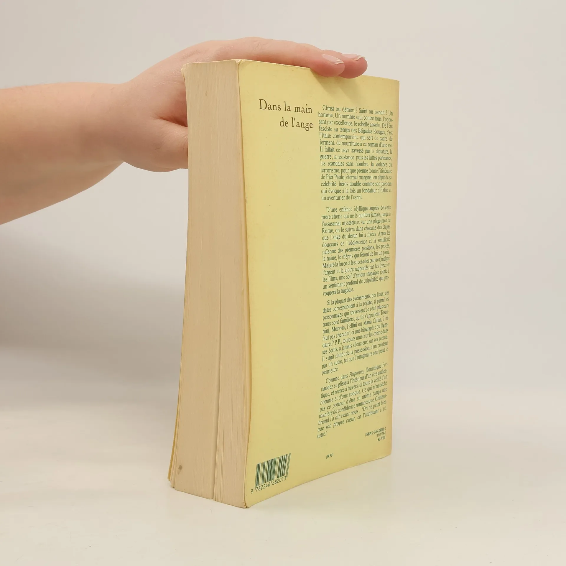 Dans la main de l’ange, de Dominique Frenandez, a obtenu le prix Goncourt 1982. C’est un roman qui d’emblée vous saute aux yeux, au coeur et ne vous laisse plus. En partant de la vie et de la mort de Pier Paolo Pasolini, l’auteur raconte, mais surtout réinvente un personage déchiré, seul,un paria sublime. De l’ère fasciste au temps des Brigades Rouges, c’est l’Italie contemporaine qui sert de cadre, de ferment, de nourriture à ce roman. Il fallait ce pays traversé par la dictature, la guerre, la résistance, puis les luttes partisanes, les scandales sans nombre, la violence du terrorisme, pour que prenne forme l’itinéraire de Pier Paolo, éternel marginal en dépit de sa célébrité.