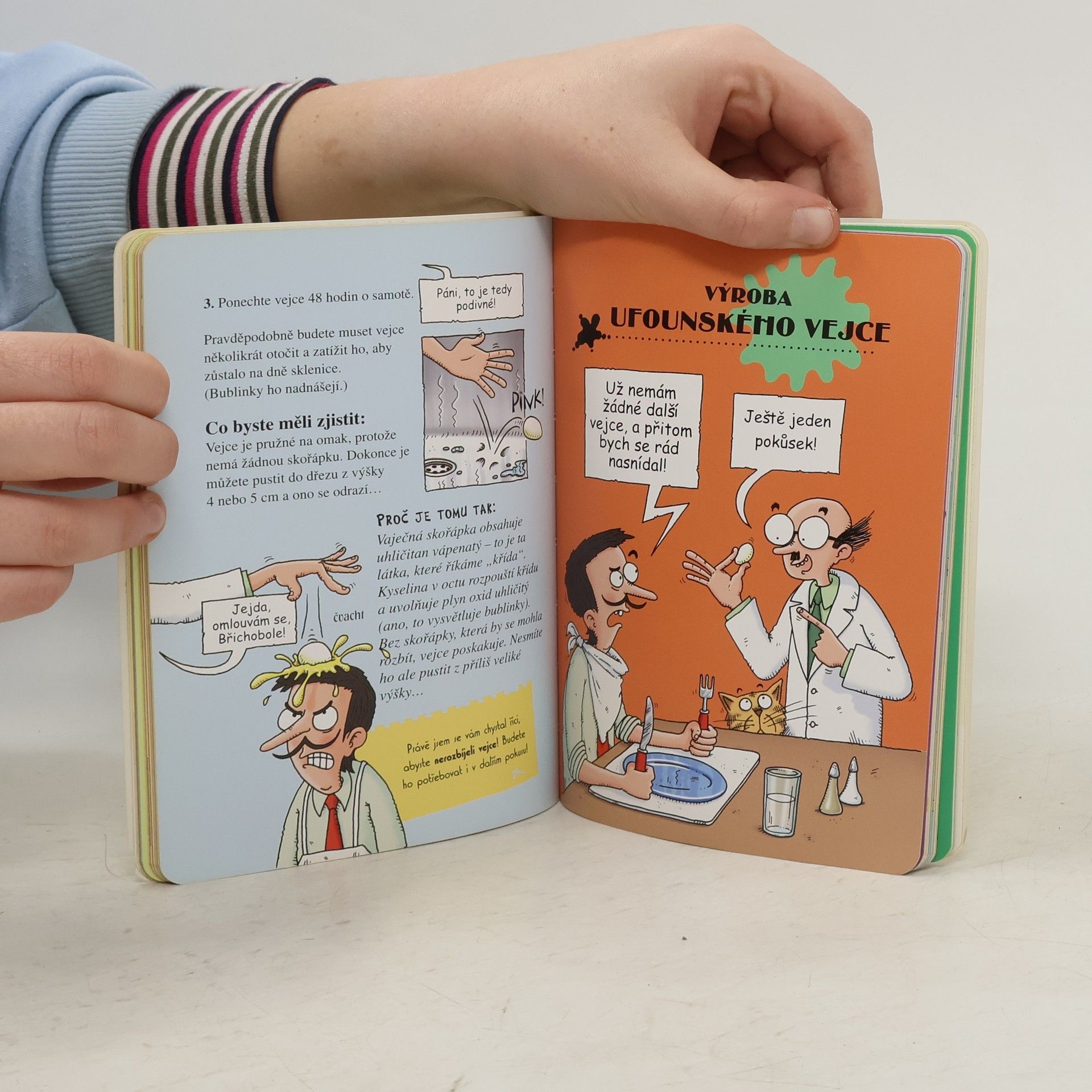 Nedovolí vám doma hrát si s jídlem? Zkuste s ním tedy experimentovat. V této knížce na vás čekají dvě desítky ztřeštěných pokusů, které lze provádět s různými potravinami. Můžete například vytvořit ufonská vejce nebo ochutnat pavouka v aspiku. A kdyby vám ani to nestačilo, můžete vyřešit obrovskou záhadu, proč se v některé tekutině bublinky drží a v jiné ne.