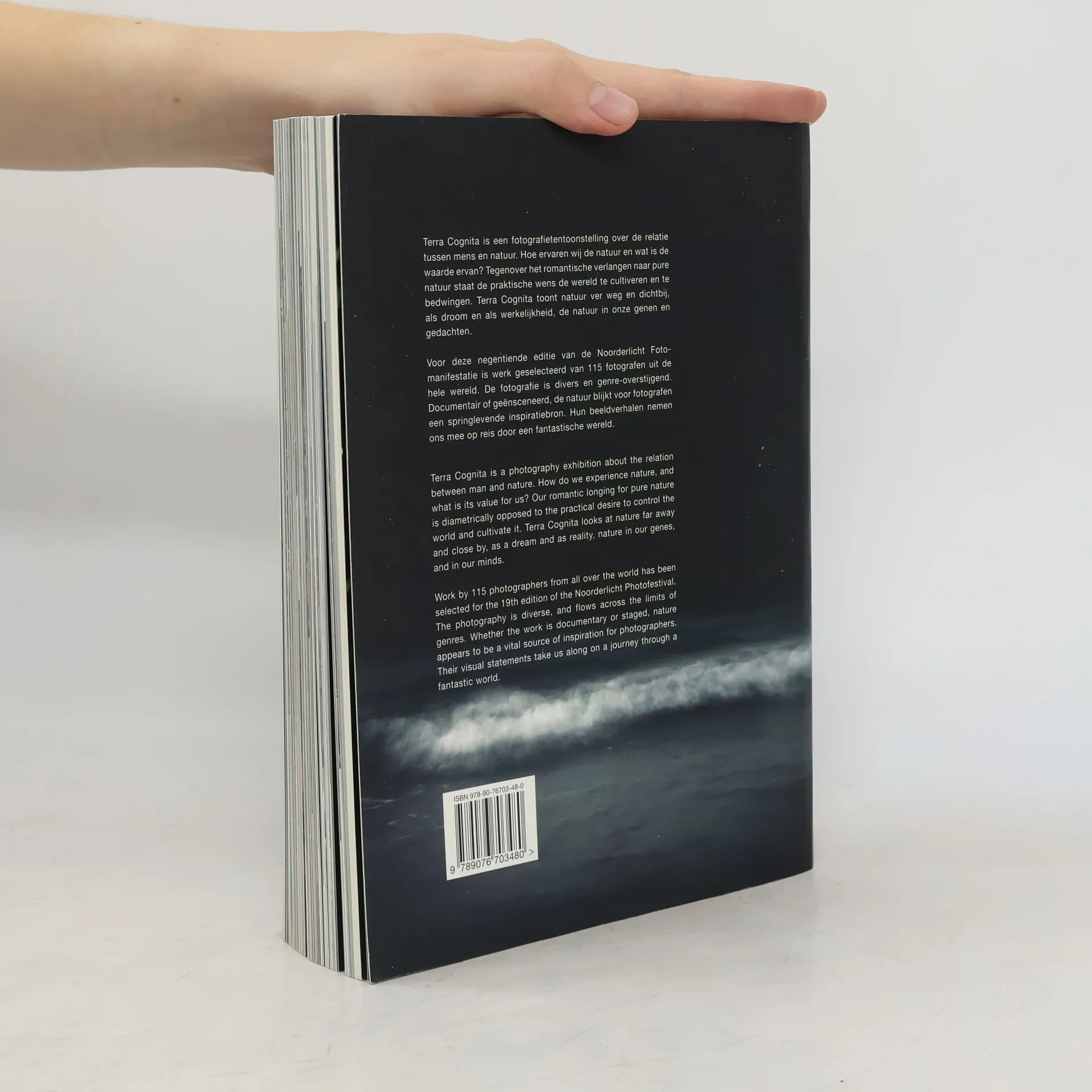 Catalogue of an exhibition of photographs from the 19th edition of Noorderlicht International Photofestival: Terra Cognita, about the relation between man and nature. Terra Cognita looks at nature far away and close by, as a dream and as reality, in our genes and in our minds. Works by more than 100 photographers from all over the world have been selected for this festival. The photography is diverse and flows across the limits of genres; from timeless black and white to conceptual or computer generated.