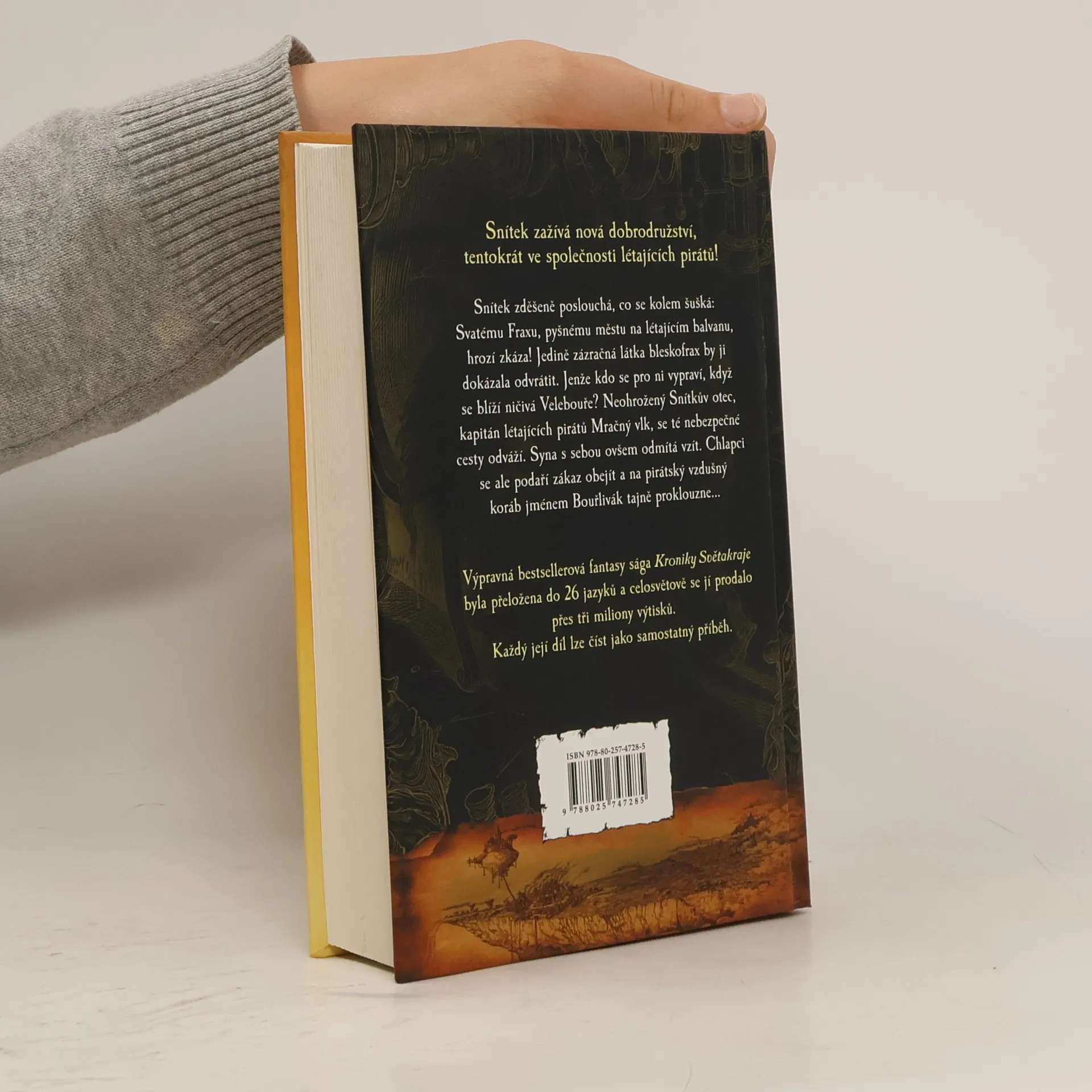 Hlavní hrdina, chlapec Snítek, se shodou náhod a proti vůli svého otce, kapitána létajících pirátů Mračného vlka, ocitne na palubě vzdušného korábu jménem Bouřlivák a vydává se na nebezpečnou výpravu. Jejím úkolem je opatřit bleskofrax, zázračnou látku, která jediná může zachránit město Svatý Frax před blížící se zkázou. Posádka čelí útrapám namáhavé pouti zrádnými Soumračnými lesy a přes nelítostný Močál a Snítek už skoro nevěří, že se mu podaří vyváznout živ a zdráv…Knihu opět ilustroval fenomenální Chris Riddell, který za svou tvorbu posbíral dlouhou řadu cen, mj. dvakrát získal prestižní Kate Greenaway Medal.