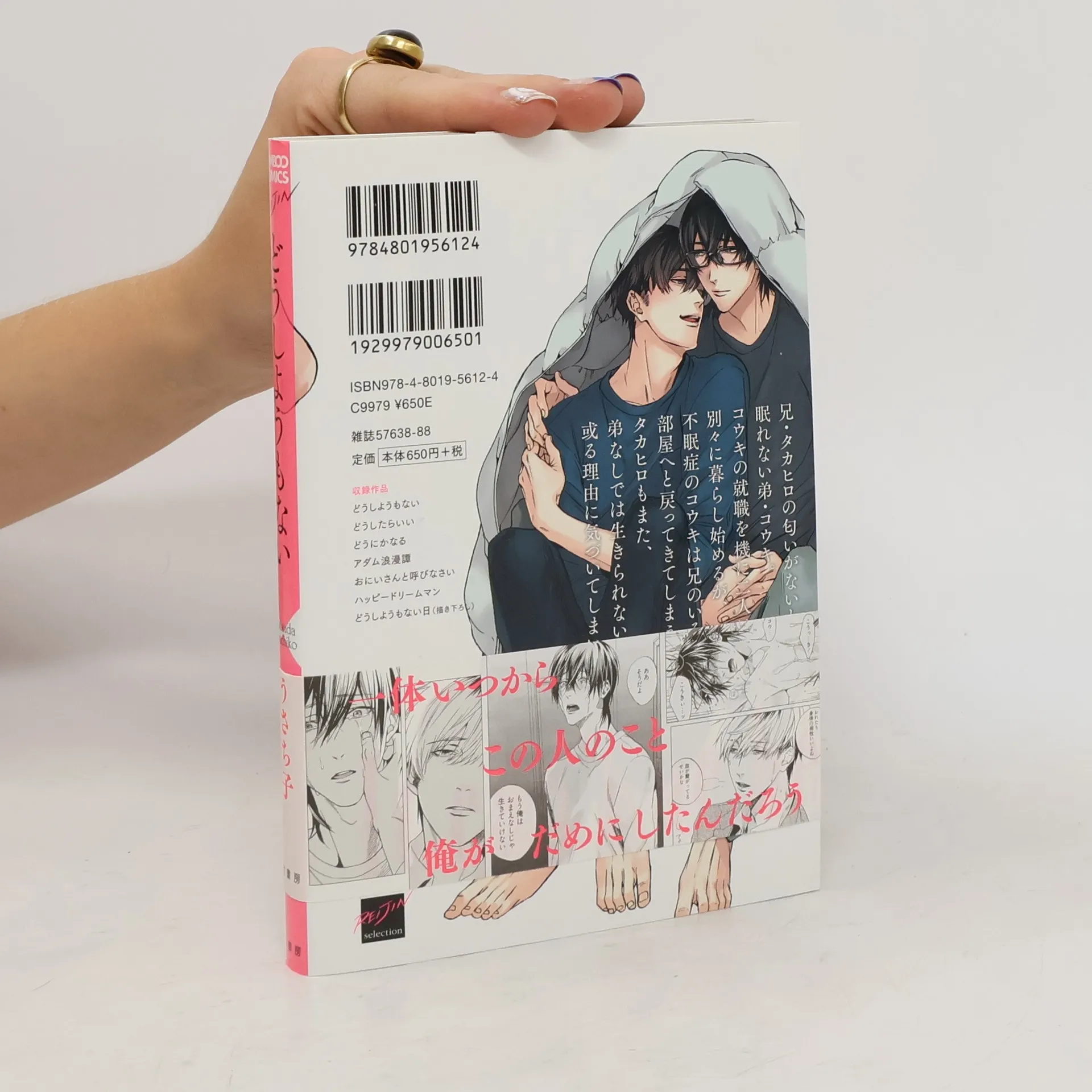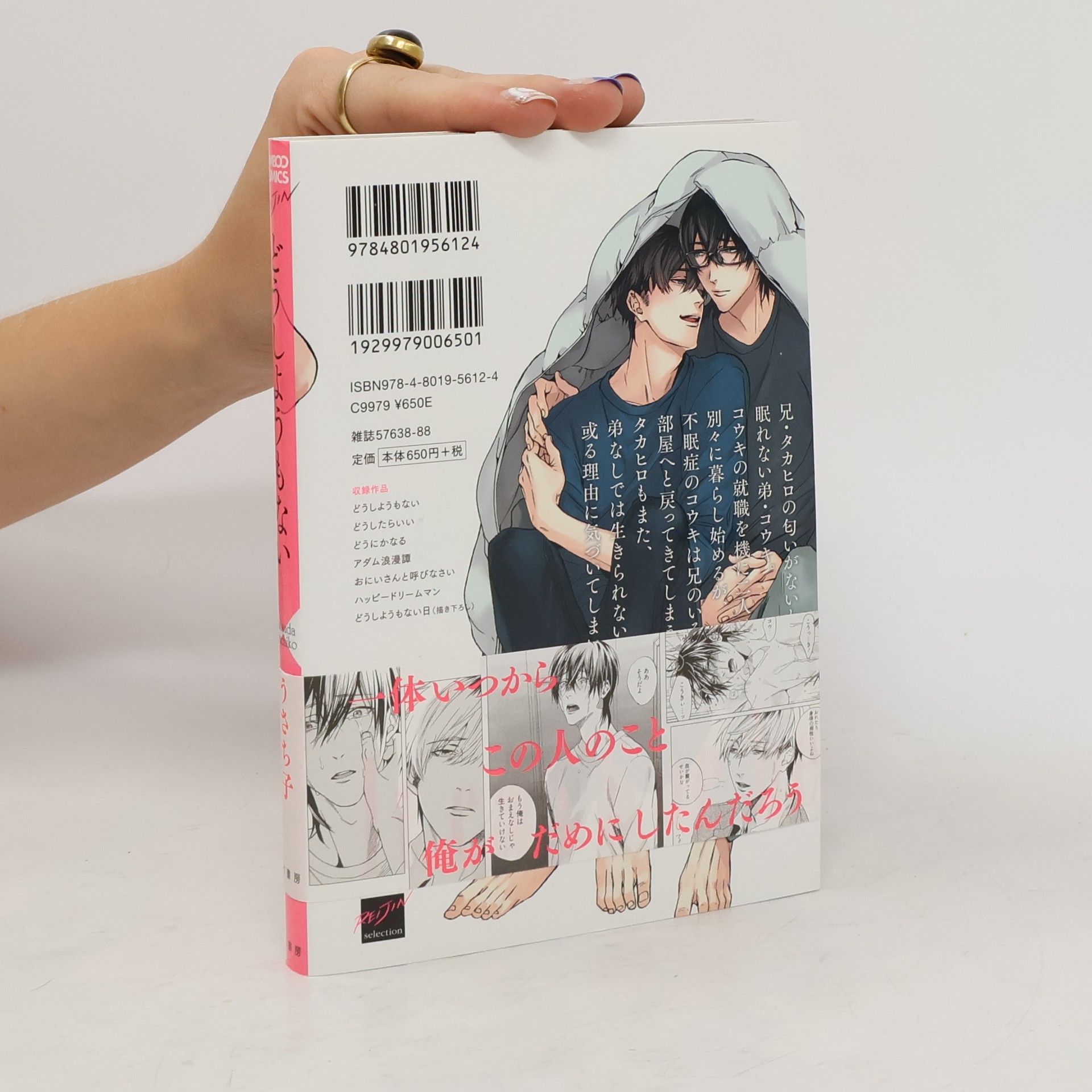兄・タカヒロの匂いがないと眠れない弟・コウキ。コウキの就職を機に二人は別々に暮らし始めるが、不眠症のコウキは兄のいる部屋へと戻ってきてしまう。タカヒロもまた、弟なしでは生きられない或る理由に気づいてしまい…!?表題シリーズと読み切り作品3編を収録した待望のデビューコミックス!収録作品・どうしようもない・どうしたらいい・どうにかなる・アダム浪漫譚・おにいさんと呼びなさい・ハッピードリームマン・どうしようもない日(描き下ろし)★単行本カバー下イラスト収録★★おまけマンガ収録★【描き下ろしの1ページ漫画が収録されています。】