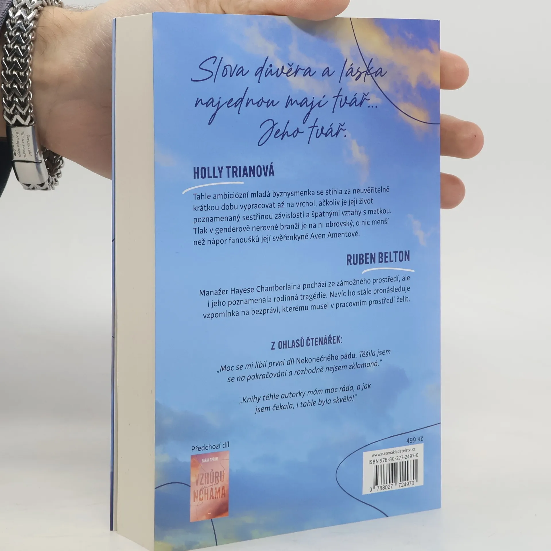 Příběh se opět odehrává v prostředí hollywoodského šoubyznysu a natáčení trilogie Nekonečný pád. Tentokrát se do popředí dostávají Holly a Ruben, manažeři herců v hlavních rolích filmu. Nejprve proti sobě stojí jako zarytí konkurenti, ale okolnosti je přinutí se sblížit, a to nejen na pracovní rovině. Holly Trianová je ambiciózní mladá byznysmenka, která se stihla za neuvěřitelně krátkou dobu vypracovat až na vrchol, ačkoliv je její život poznamenaný sestřinou závislostí a špatnými vztahy s matkou. Tlak v genderově nerovné branži je na ni obrovský, o nic menší než nápor fanoušků její svěřenkyně Aven Amentové. Ruben Belton, manažer Hayese Chamberlaina, pochází ze zámožného prostředí, ale taktéž poznamenaného rodinnou tragédií. Navíc ho stále pronásleduje vzpomínka na bezpráví, kterého se mu v práci před několika lety dostalo. Dokážou si k sobě Holly a Ruben během natáčení na těch nejprestižnějších světových místech najít cestu? A co když jim v tom brání netušená překážka, která je zároveň pojítkem mezi nimi?