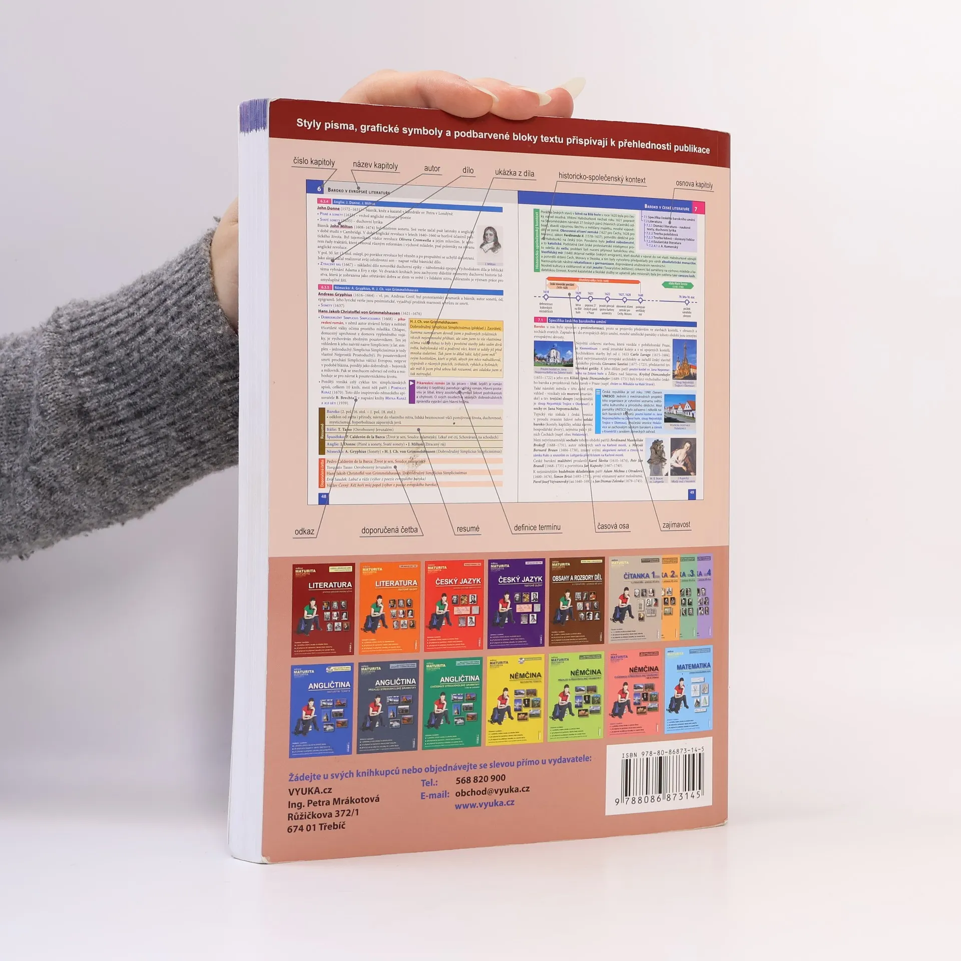 Učebnice poslouží nejen při pravidelné výuce literatury, ale následně i při přípravě k maturitě a přijímacím zkouškám na vysokou školu. V úvodu kapitoly je vždy zařazen tzv. historicko-společenský kontext. V něm jsou představeny základní atributy daného literárního období, které bylo vždy spjato s dobovými společenskými, kulturními a politickými událostmi. Text doprovází množství obrázků, které mají studentům ujasnit pohled na probíranou problematiku a ukázat ji na příkladech.