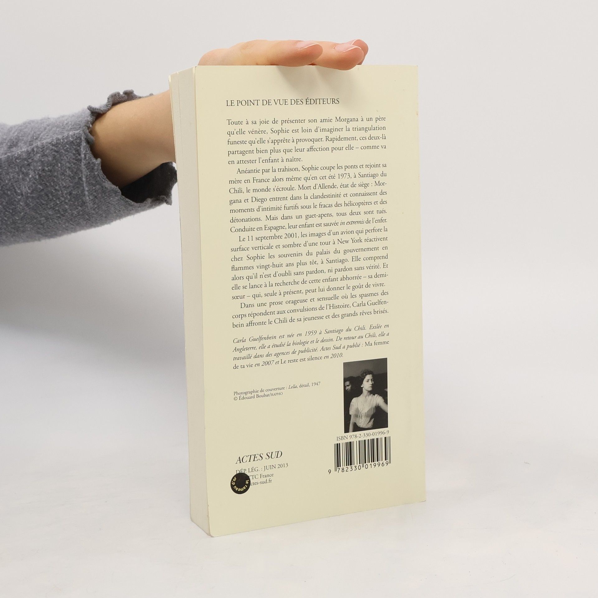 Toute à sa joie de présenter son amie Morgana à un père qu'elle vénère, Sophie est loin d'imaginer la triangulation funeste qu'elle s'apprête à provoquer. Rapidement, ces deux-là partagent bien plus que leur affection pour elle - comme va en attester l'enfant à naître. Anéantie par la trahison, Sophie coupe les ponts et rejoint sa mère en France alors même qu'en cet été 1973, à Santiago du Chili, le monde s'écroule. Mort d'Allende, état de siège : Morgana et Diego entrent dans la clandestinité et connaissent des moments d'intimité furtifs sous le fracas des hélicoptères et des détonations. Mais dans un guet-apens, tous deux sont niés. Conduite en Espagne, leur enfant est sauvée in extremis de l'enfer. Le 11 septembre 2001, les images d'un avion qui perfore la surface verticale et sombre d'une tour à New York réactivent chez Sophie les souvenirs du palais du gouvernement en flammes vingt-huit ans plus tôt, à Santiago. Elle comprend alors qu'il n'est d'oubli sans pardon, ni pardon sans vérité. Et elle se lance à la recherche de cette enfant abhorrée - sa demi - soeur - qui, seule à présent, peut lui donner le goût de vivre. Dans une prose orageuse et sensuelle où les spasmes des corps répondent aux convulsions de l'Histoire, Carla Guelfenbein affronte le Chili de sa jeunesse et des grands rêves brisés.