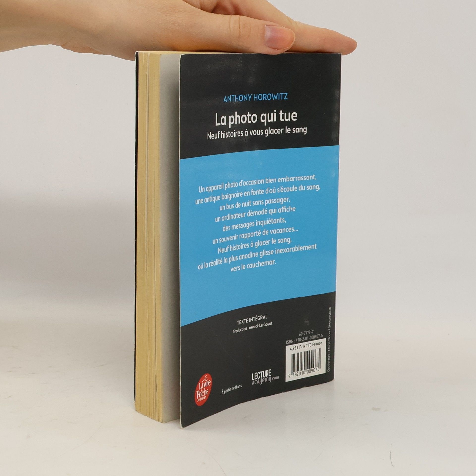 Un appareil photo d'occasion bien embarrassant, une antique baignoire de fonte d'où s'écoule du sang, un bus de nuit sans passagers, un ordinateur démodé qui affiche des messages inquiétants, un souvenir rapporté de vacances... Neuf histoires à glacer le sang, où la réalité la plus anodine glisse inexorablement vers le cauchemar. Ce recueil est composé des nouvelles suivantes : - La photo qui tue - Bain du soir - Transport éclair - Le bus de nuit - L'horrible rêve de Harriet - Peur - Jeux vidéos - L'homme au visage jaune - L'oreille du singe.