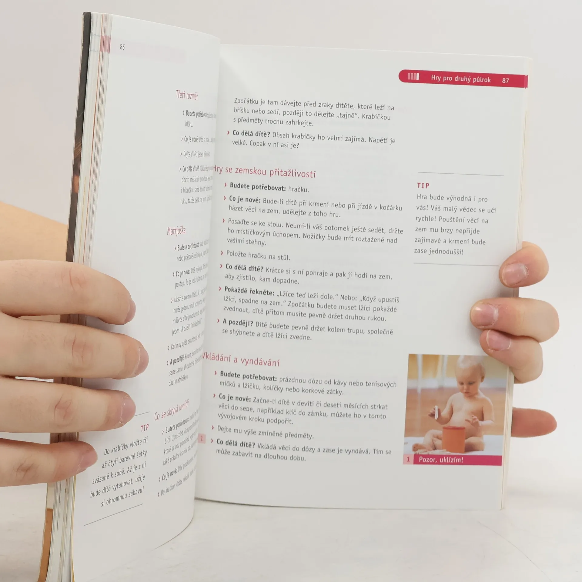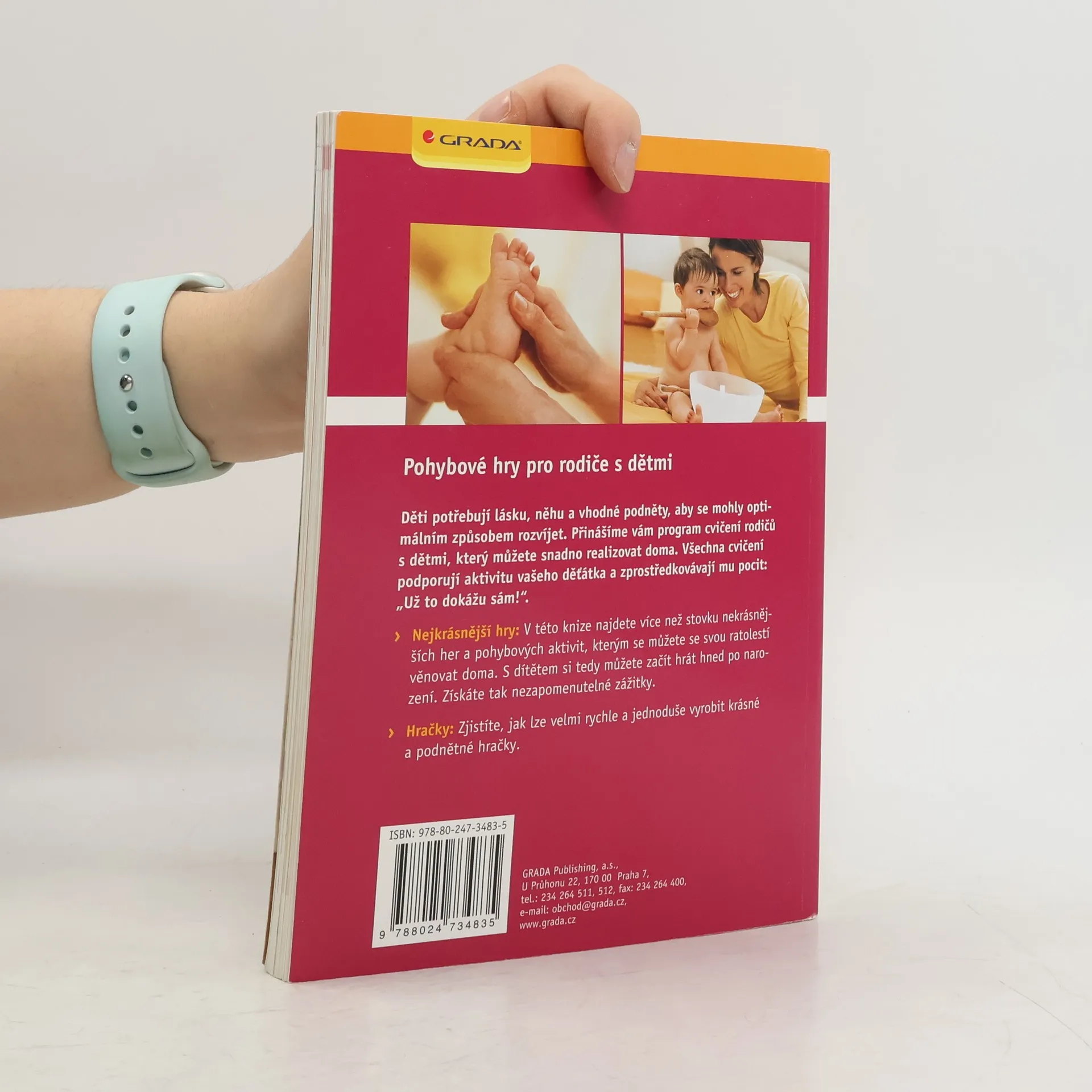 Program cvičení rodičů s dětmi do jednoho roku. Děti potřebují lásku, něhu a vhodné podněty, aby se mohly optimálním způsobem rozvíjet. Přinášíme vám program cvičení rodičů s dětmi, který můžete snadno realizovat doma. Všechna cvičení podporují aktivitu vašeho děťátka a zprostředkovávají mu pocit: „Už to dokážu sám!“. Nejkrásnější hry: V této knize najdete více než stovku nekrásnějších her a pohybových aktivit, kterým se můžete se svou ratolestí věnovat doma. S dítětem si tedy můžete začít hrát hned po narození. Získáte tak nezapomenutelné zážitky. Hračky: Zjistíte, jak lze velmi rychle a jednoduše vyrobit krásné a podnětné hračky.