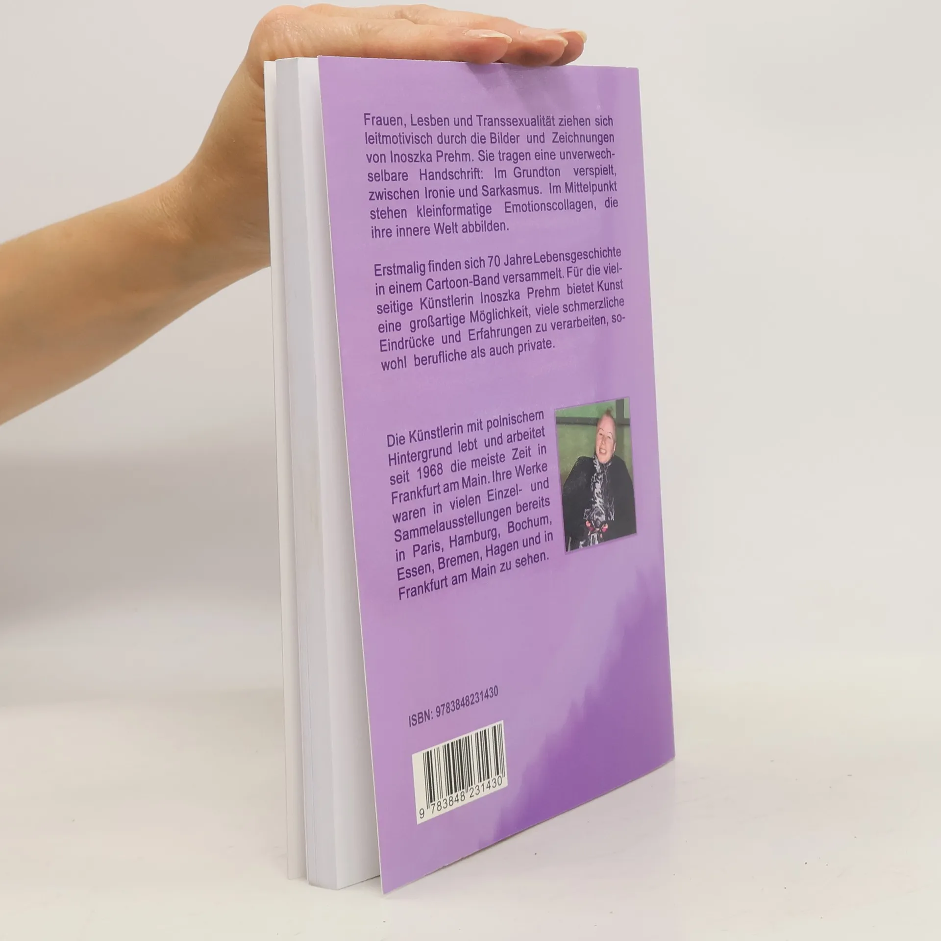 Frauen, Lesben und Transsexualität ziehen sich leitmotivisch durch die Bilder und Zeichnungen von Inoszka Prehm. Sie tragen eine unverwechselbare Handschrift: Im Grundton verspielt, zwischen Ironie und Sarkasmus. Im Mittelpunkt stehen kleinformatige Emotionscollagen, die ihre innere Welt abbilden. Erstmalig finden sich 70 Jahre Lebensgeschichte in einem Cartoon-Band versammelt. Für die vielseitige Künstlerin Inoszka Prehm bietet Kunst eine großartige Möglichkeit, viele schmerzliche Eindrücke und Erfahrungen zu verarbeiten, sowohl berufliche als auch private.