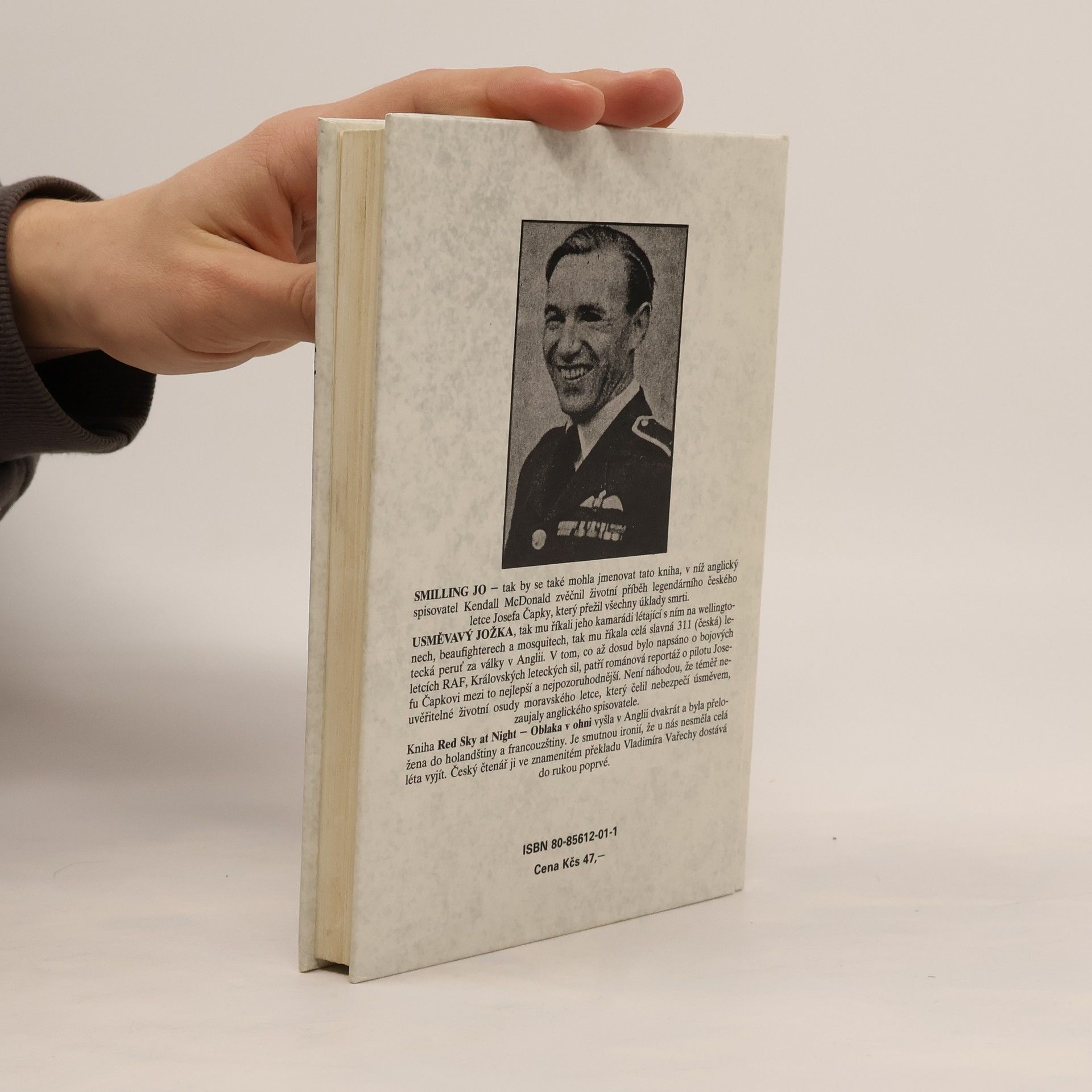 Smilling Jo - tak se taky mohla jmenovat knížka, v níž anglický spisovatel Kendall McDonald zvěčnil životní příběh legendárního českého letce Josefa Čapky, který přežil všechny úklady smrti. Usměvavý Jožka, tak mu říkali jeho kamarádi létající s ním na Wellingtonech, Beaufighterech a Mosquitech, tak mu říkala celá slavná 311. (česká) letecká peruť za války v Anglii. V tom, co až dosud bylo napsáno o bojových letcích RAF, Královských leteckých sil, patří románová reportáž o pilotu Josefu Čapkovi mezi to nejlepší a nejpozoruhodnější. Není náhodou, že téměř neuvěřitelné životní osudy moravského letce, který čelil nebezpečí úsměvem, zaujaly anglického spisovatele.