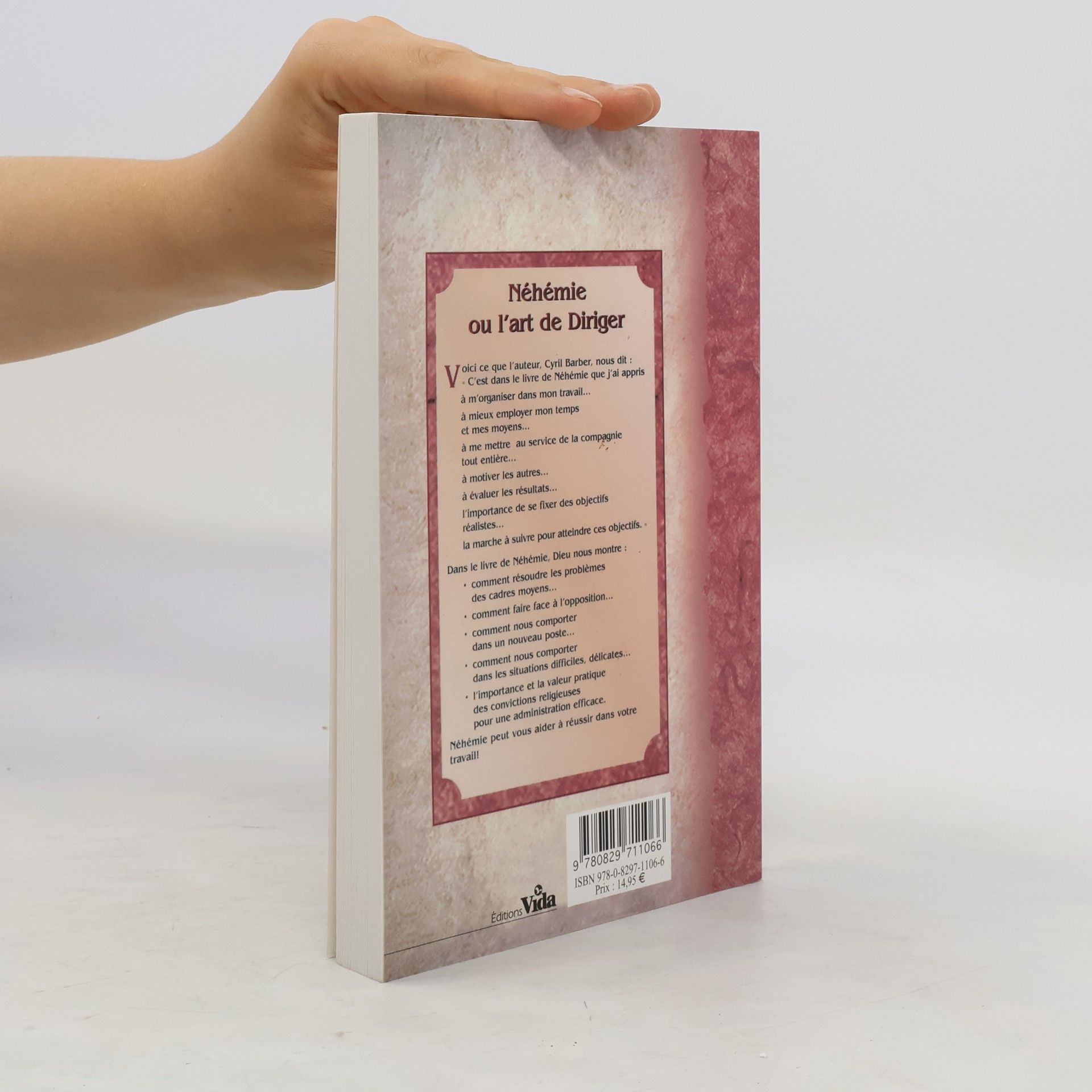 Voici ce que l'auteur, Cyril Barber, nous dit : C'est dans le livre de Néhémie que j'ai appris : - à m'organiser dans mon travail- à mieux employer mon temps et mes moyens- à me mettre au service de la compagnie tout entière- à motiver les autres- à évaluer les résultats- l'importance de se fixer des objectifs réalistes- la marche à suivre pour atteindre ces objectifs.