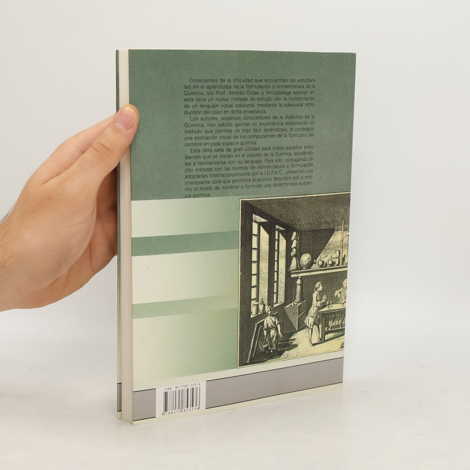 Conscientes de la dificultad que encuentran los estudiantes en el aprendizaje de la formulación y nomenclatura en Química, los profesores Andrés y Arrizabalaga aportan en esta obra un nuevo método de estudio con la incorporación de un lenguaje visual adicional, y la introducción del color en dicha enseñanza. Los autores, conocedores de la didáctica de la Química, han sabido aportar su experiencia elaborando un método que permite un más fácil aprendizaje al asociar visualmente los componentes de la fórmula y del nombre en cada especie de química, según las normas de nomenclatura y formulación adoptadas internacionalmente por la I.U.P.A.C. Libro especialmente indicado para estudiantes que se inicien en el estudio de la Química.