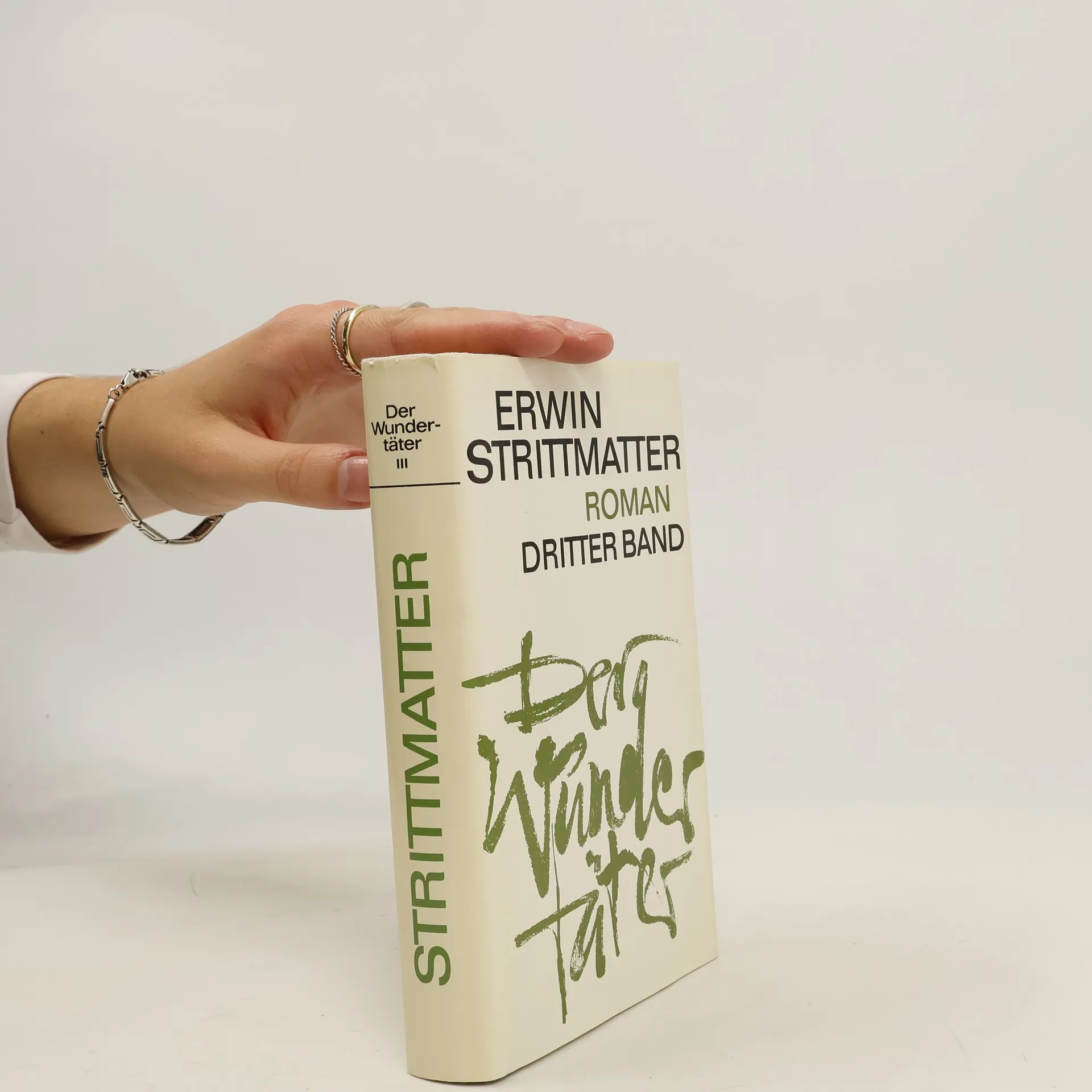 (1) 26. Auflage; (2) 8. Auflage; (3) 1. Auflage 8°, gebundene Ausgabe, Leinen Berlin und Weimar, Aufbau Verlag, (1) 1982; (2) 1982; (3) 1980. (1) 501 (1) Seiten; (2) 438 (1) Seiten; (3) 654 (1) Seiten (1) Hellgraue Originalleinwand mit farbigem (roten) Rückentitel und schwarzem Deckentitel; (2) Hellgrüne Originalleinwand mit farbigem (braunen) Rückentitel und schwarzem Deckentitel; (3) Hellbeige Originalleinwand mit farbigem (grünem) Rückentitel und schwarzem Deckentitel, alle mit Schutzumschlag, bei Band 1 zwei kleine Einrisse, fachmännisch hinterlegt, bei Band 3 am oberen Buchblock kleine Flecken, die Bücher sauber und frisch. Die "Wundertäter"-Trilogie, 1957, 1973 und 1980 entstanden, zeichnet den dornenreichen Weg des Stanislaus Büdner aus Waldwiesen vom poetisierenden Bäckergesellen zum kritischen Schriftsteller nach. Mit Erwin Strittmatters unverwechselbarer Erzählkunst aus Poesie, Menschenkenntnis und Humor gehört sie zu den großen Werken der neueren deutschen Literatur. Erster Band auf dem fliegenden Vorsatz Signatur des Autors. Erwin Strittmatter (* 14. August 1912 in Spremberg; + 31. Januar 1994 in Schulzenhof bei Dollgow) war ein sorbisch-deutscher Schriftsteller, der auf Deutsch schrieb. Er gehörte zu den bekanntesten Schriftstellern der DDR.