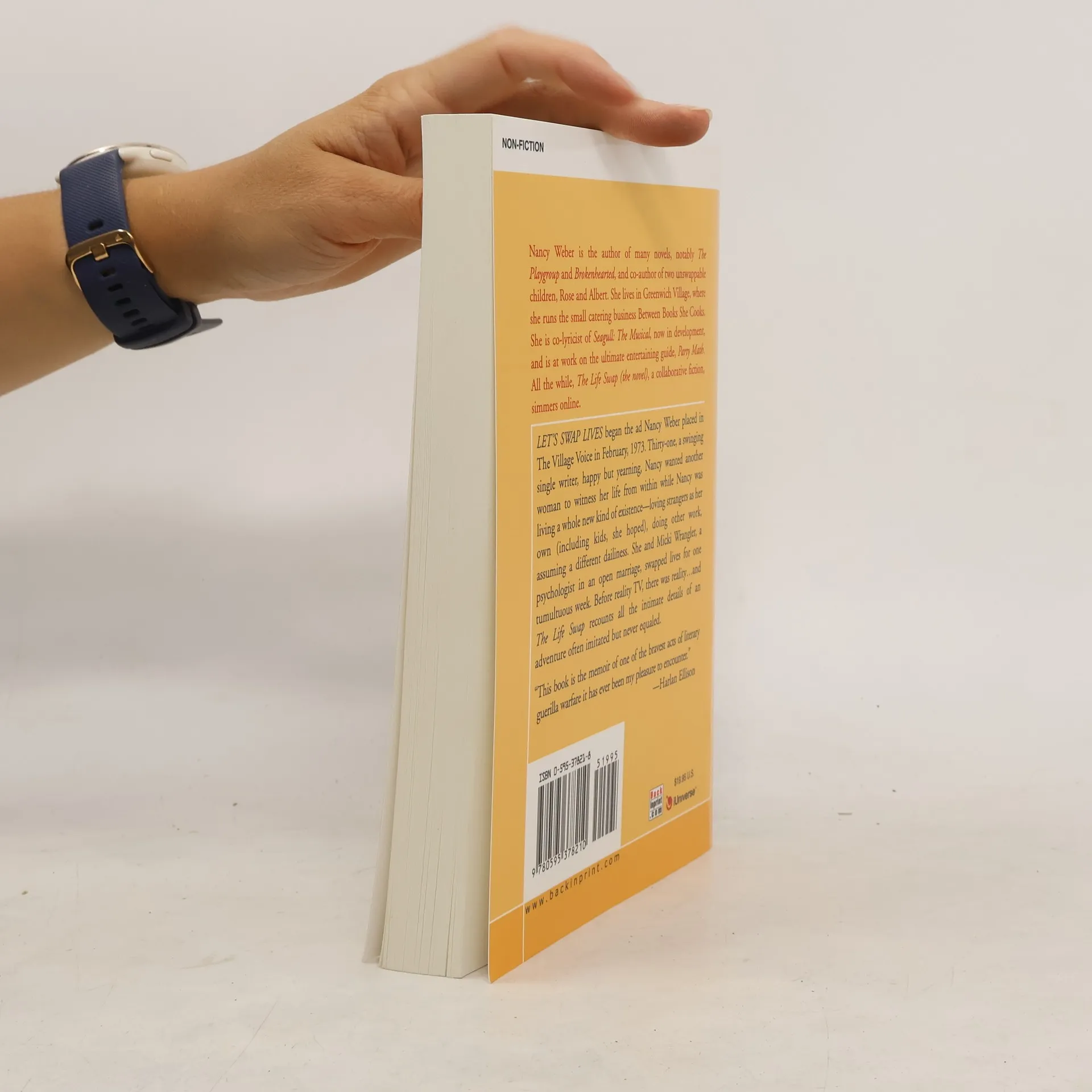 "LET'S SWAP LIVES" began the ad Nancy Weber placed in The Village Voice in February, 1973. Thirty-one, a swinging single writer, happy but yearning, Nancy wanted another woman to witness her life from within while Nancy was living a whole new kind of existence-loving strangers as her own (including kids, she hoped), doing other work, assuming a different dailiness. She and Micki Wrangler, a psychologist in an open marriage, swapped lives for one tumultuous week. Before reality TV, there was reality.and "The Life Swap" recounts all the intimate details of an adventure often imitated but never equaled. "This book is the memoir of one of the bravest acts of literary guerilla warfare it has ever been my pleasure to encounter."-Harlan Ellison