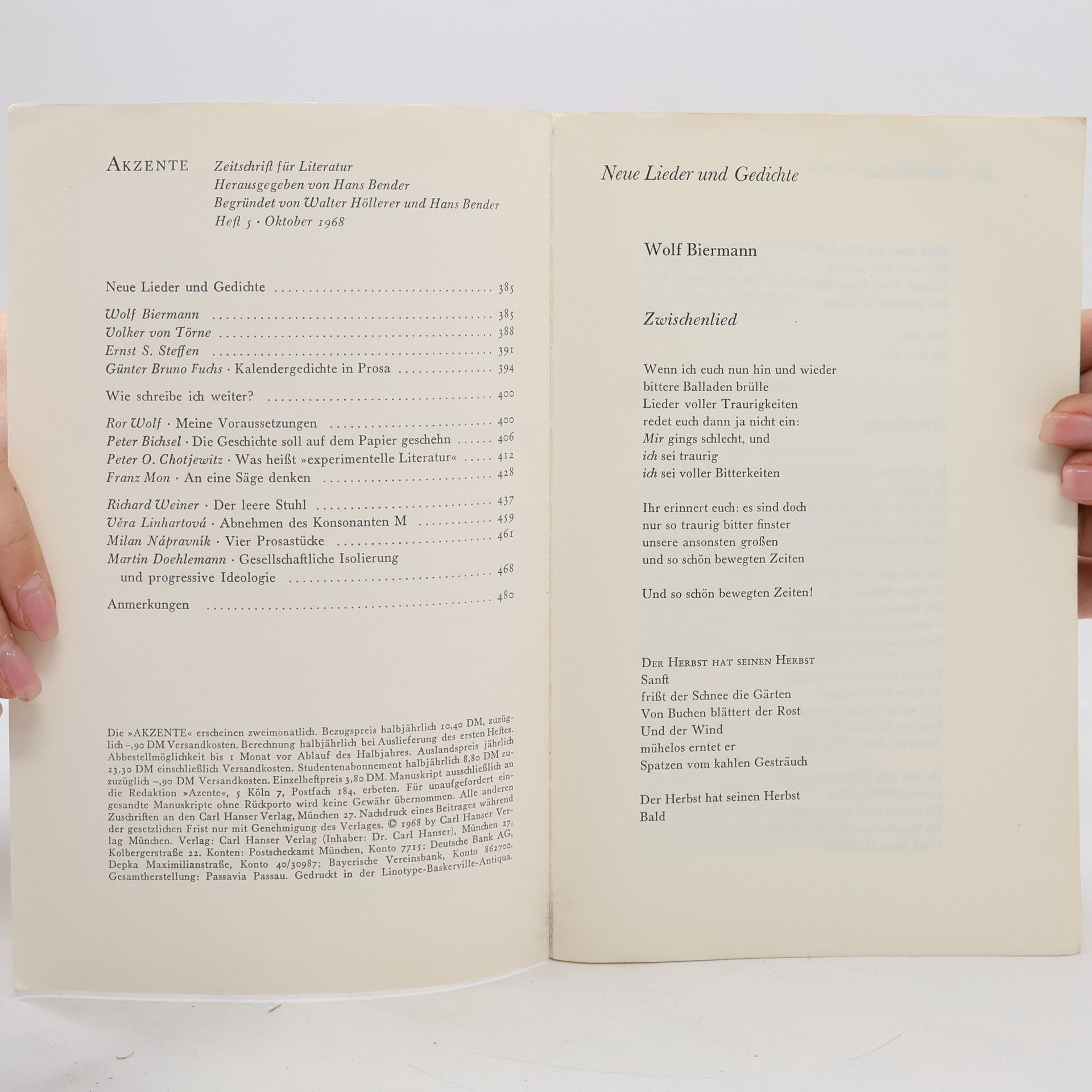 Akzente: Zeitschrift für Literatur. Heft 5/68
