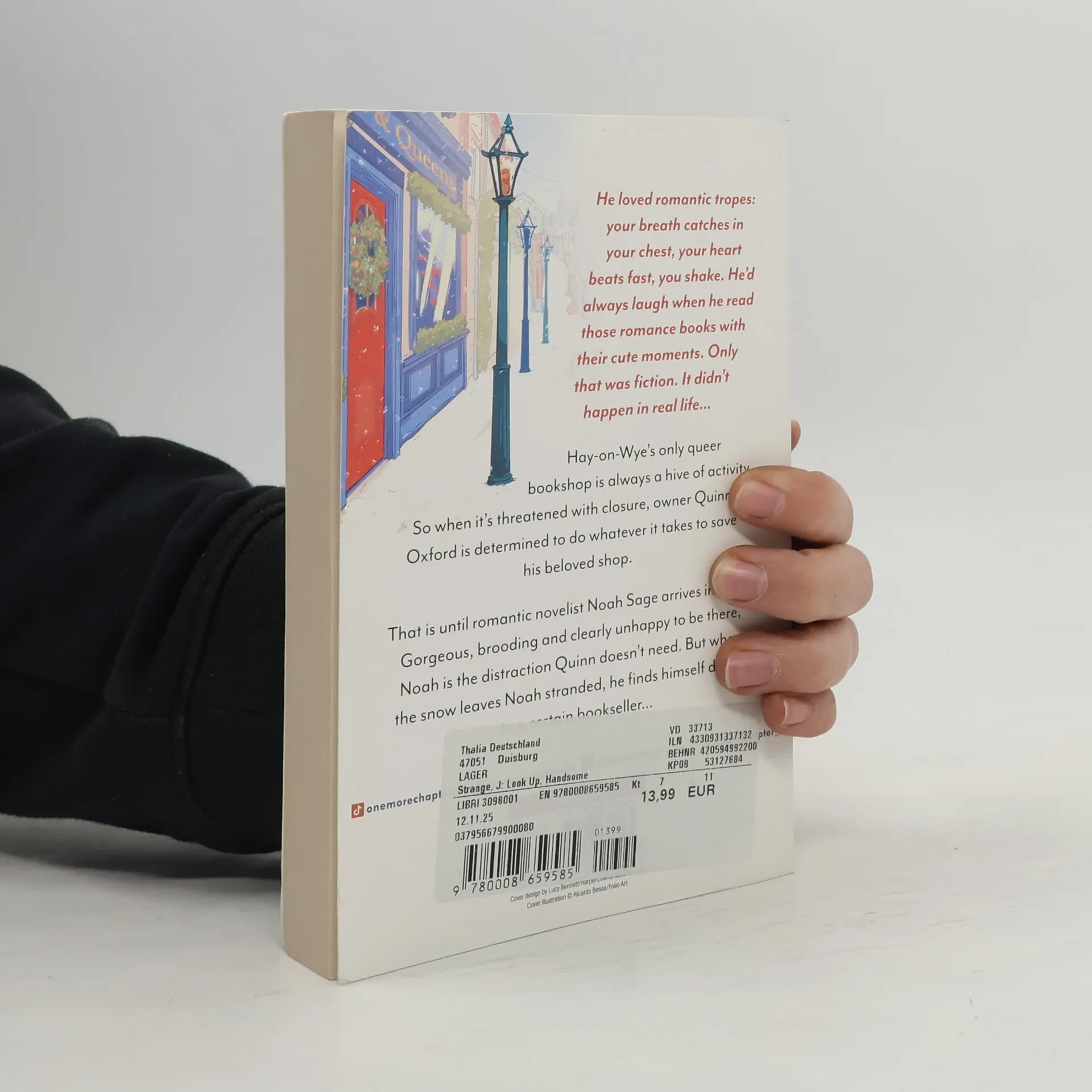 Quinn wants to save his bookshop, the last thing he needs is to fall in love…Hay-on-Wye’s only queer bookshop is always a hive of activity. So when it’s threatened with closure, its owner Quinn Oxford is determined to do whatever it takes to save his beloved shop.That is until romantic novelist Noah Sage arrives in town. Gorgeous, brooding and clearly unhappy to be there, Noah is the distraction Quinn doesn’t need. Noah has a history with Hay and it’s one he’d rather not face. But when the snow leaves him stranded, he’s left with no choice.Hay is a small town, meaning Quinn can’t help but bump into Noah wherever he goes. And as the two grow closer together, is it possible that Noah’s feelings towards Hay will thaw? Can Quinn have a real-life romance and save his beloved bookshop? Or will he need a Christmas miracle…The perfect festive romcom for fans of Casey McQuiston and Alexis Hall!Tropes:- Small Town- Forced Proximity- Grumpy x Sunshine
