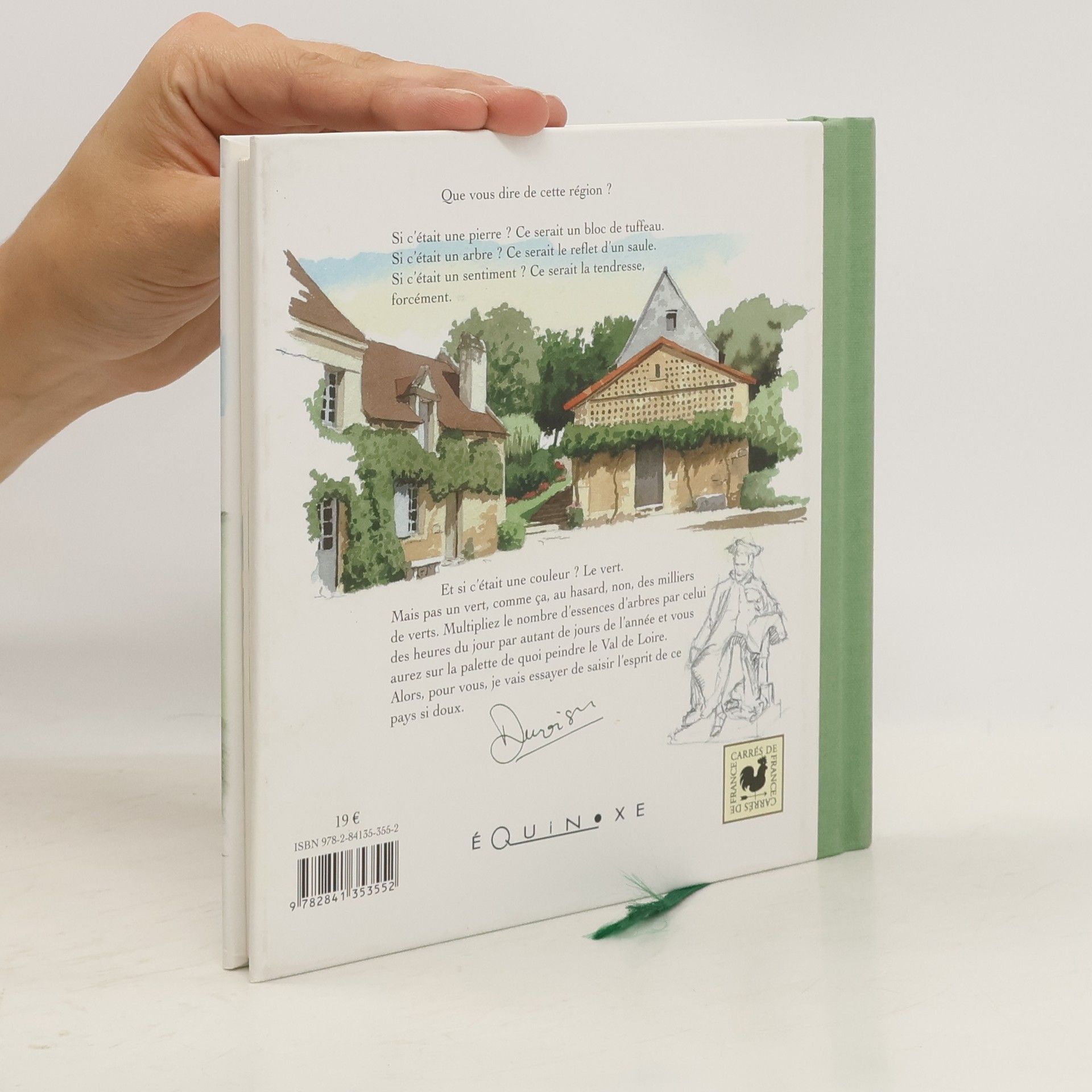Que vous dire de cette région ? Si c'était une pierre ? Ce serait un bloc de tuffeau. Si c'était un arbre ? Ce serait le reflet d'un saule. Si c'était un sentiment ? Ce serait la tendresse, forcément. Et si c'était une couleur ? Le vert. Mais pas un vert, comme ça, au hasard, non, des milliers de verts. Multipliez le nombre d'essences d'arbres par celui des heures du jour par autant de jours de l'année et vous aurez sur la palette de quoi peindre le Val de Loire. Alors, pour vous, je vais essayer de saisir l'esprit de ce pays si doux.
