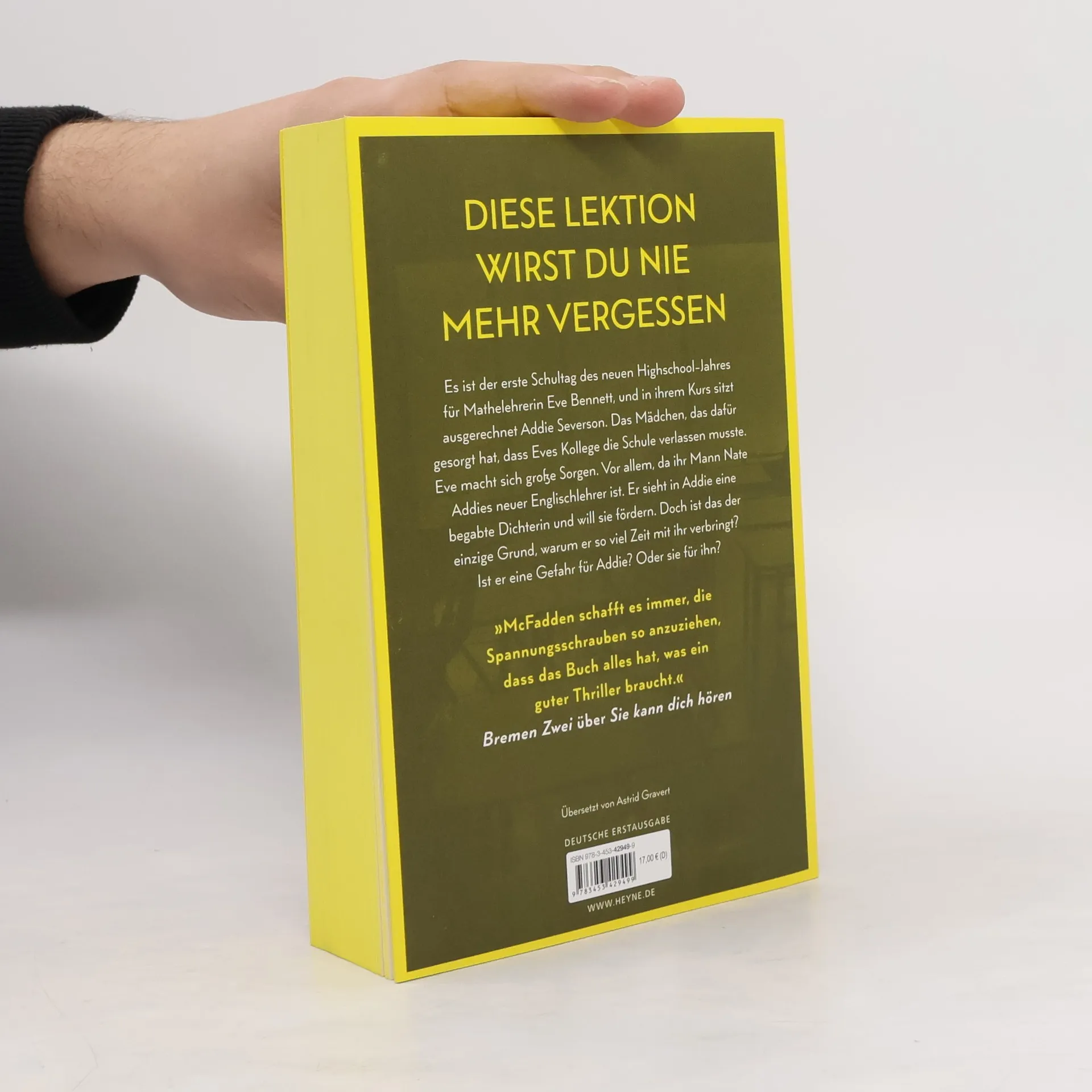 Lektion 1: Sobald du die Schule betrittst, traue niemandem. Mit farbig gestaltetem Buchschnitt – nur in limitierter Erstauflage der gedruckten Ausgabe (Lieferung je nach Verfügbarkeit) Eigentlich hat Eve Bennett ein gutes Leben. Sie ist Mathelehrerin an der örtlichen Highschool und verheiratet mit Nate, der dort Englisch unterrichtet. Doch letztes Jahr wurde die Schule von einem Skandal erschüttert, in dessen Zentrum eine Schülerin stand. Und dieses Jahr ist diese Schülerin in Eves Klasse. Addie kann man nicht trauen, sie lügt und verletzt Menschen. Aber niemand kennt die wahre Addie. Niemand kennt das Geheimnis, das sie zerstören könnte. Und Addie würde alles dafür tun, dass es so bleibt. Ihr einziger Lichtblick in diesem Schuljahr: ihr neuer Englischlehrer Nate Bennett.