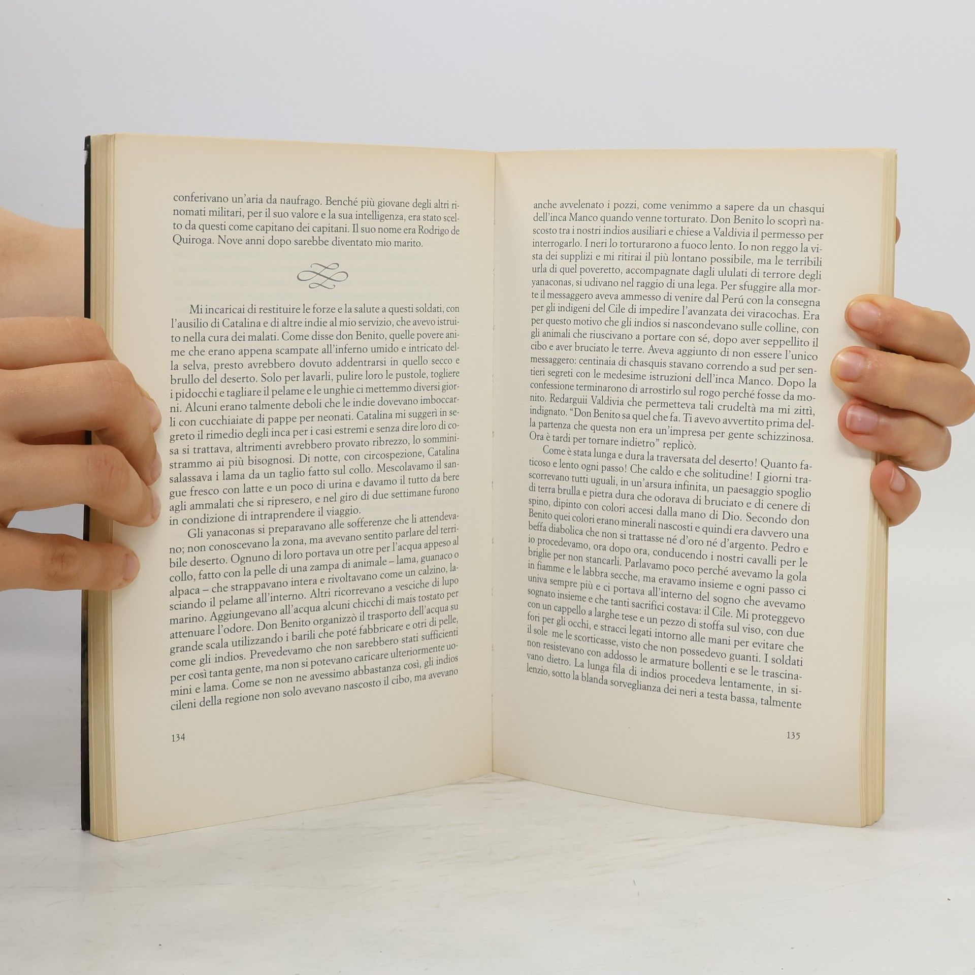 Inés dell’anima mia, è Inés de Suárez, l’unica donna spagnola che ha partecipato alla Conquista del Cile nel 1540. Accompagnava il conquistatore Pedro de Valvidia, il suo amante. Per amore ha attraversato il deserto di Atacama ed è arrivata in Cile, per lottare contro gli elementi, contro una natura ostile e contro gli indigeni, i più primitivi e i più coraggiosi d’America. Lei stessa è una donna eccezionalmente coraggiosa e ha vissuto una lunga vita. Io racconto la storia della Conquista attraverso Inés, per mezzo degli occhi di Inés. Appare in una o due righe dei libri di storia cilena, tutti libri scritti da storici di sesso maschile, nei quali non si è data nessuna importanza a questa donna straordinaria. Quando ho saputo della sua esistenza, quando ho letto quelle brevi frasi all’interno dei libri di storia, mi sono detta “Ah… Ma chi è questa donna? Cosa ha fatto?” e ho dato inizio a una ricerca su di lei, una ricerca che mi ha preso molto tempo perché su Inés è stato scritto davvero poco. Ma d’altra parte è stato un vantaggio perché mi ha permesso d’immaginare tanto. È una guerriera, una donna che lotta e ottiene ciò che vuole. Ottiene prima di tutto l’amore, ottiene la terra, poi ottiene il potere, e finalmente ottiene, per trent’anni, l’amore di un altro uomo. Per me, è una donna con una vita straordinaria, una vita che mi sarebbe piaciuto vivere.