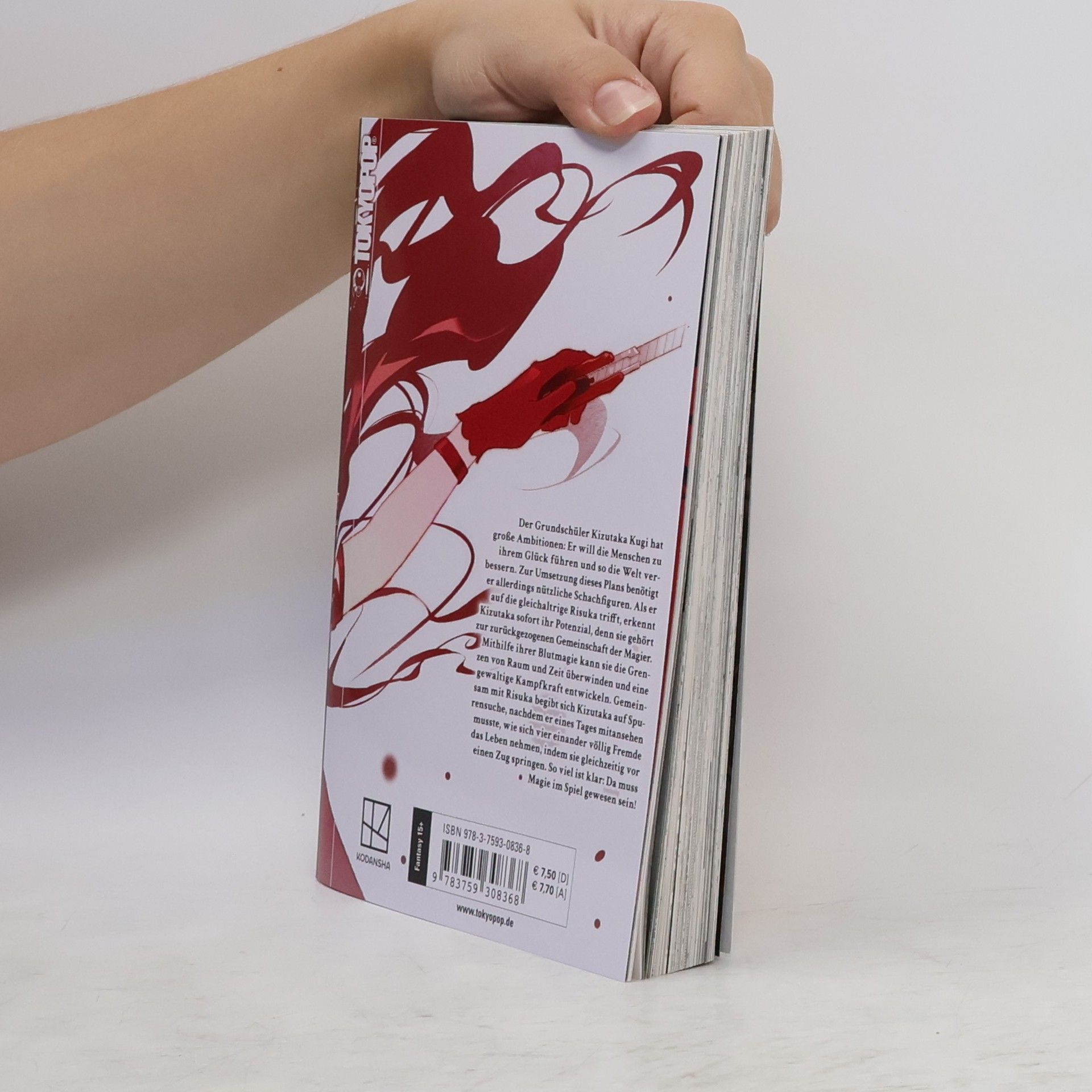 Der Grundschüler Kugi Kizutaka hat große Ambitionen: Er will die Menschen zu ihrem Glück führen und so die Welt verbessern. Zur Umsetzung dieses Plans benötigt er allerdings nützliche Schachfiguren. Als er auf die gleichaltrige Risuka trifft, erkennt Kizutaka sofort ihr Potenzial, denn sie gehört zur zurückgezogenen Gemeinschaft der Magier. Mithilfe ihrer Blutmagie kann sie die Grenzen von Raum und Zeit überwinden und eine gewaltige Kampfkraft entwickeln. Gemeinsam mit Risuka begibt sich Kizutaka auf Spurensuche, nachdem er eines Tages mitansehen musste, wie sich vier einander völlig Fremde das Leben nehmen, indem sie gleichzeitig vor einen Zug springen. So viel ist klar: Da muss Magie im Spiel gewesen sein! Mit Farbseiten und einem wunderschönen Buchrückenmotiv über alle sieben Bände! und mit Poster in der Erstauflage von Band 1!