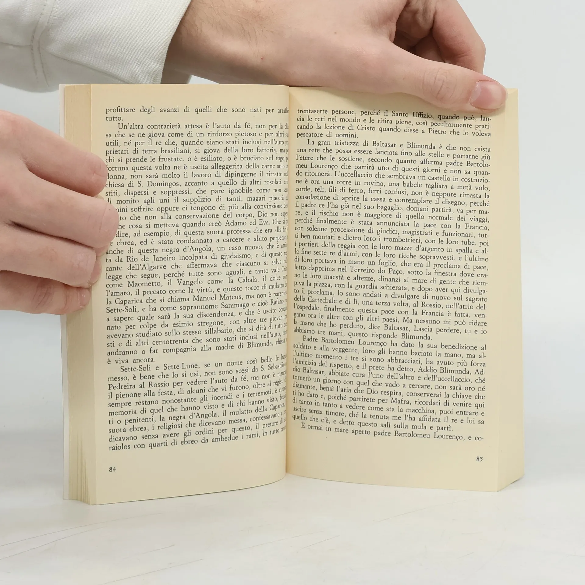 Nel Portogallo del primo Settecento dominato da Inquisizione e auto da fé, incrociano i loro destini personaggi opposti e complementari: Giovanni V re di Portogallo, che per la grazia ricevuta di un erede avvia la faraonica costruzione del convento di Mafra; padre Bartolomeu Lourenco de Gusmào, che mescola scienza e misticismo nel progetto di vincere la gravità con una macchina per volare; Baltasar Mateus il Sette-Soli, ex soldato monco di una mano; Blimunda la Sette-Lune, giovane dotata di poteri occulti che a Baltasar si lega di tenacissimo amore; e il musicista Domenico Scarlatti. In questo prodigioso romanzo storico e d'invenzione, utopia e morte, riso e tragedia, affresco corale e struggente vicenda personale, immaginazione sfrenata e spirito critico si coniugano nella voce, ironica e compassionevole assieme, del narratore messo di fronte all'ipocrisia e all'arroganza dei tempi, ma anche ai primi sintomi di un rinnovamento sociale e culturale.<br /><br />Con una nota di Rita Desti