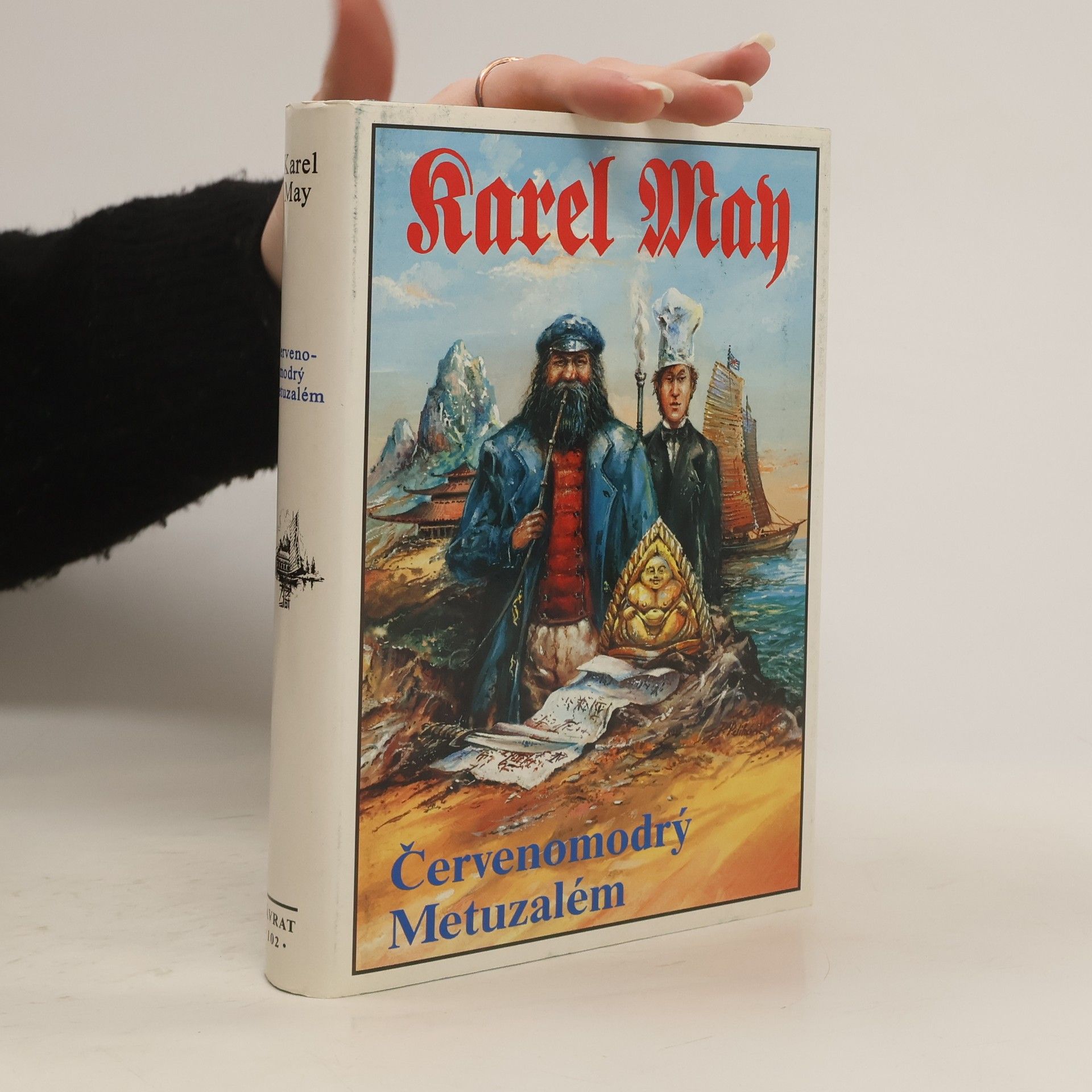 Karel May patří ke klasikům dobrodružné literatury. Na rozdíl od většiny Mayových knih nás ale román Červenomodrý Metuzalém zavede do Číny předminulého století, tehdy nazývané Říše nebes. Na cestě za dědictvím se vydává věčný student Červenomodrý Metuzalém se svým sluhou Gottfriede z Bouillonu, gymnasistou Steinem a bernardýnem Cupidem. Cesta plná dobrodružství ale i humoru nás zavede jak mezi piráty, do čínských věznic, tak mezi mohamedánské vzbouřence. Ale i další postavy tohoto stále humorného dílka, kterými jsou kapitán Frick Turnerstick mluvící čínsky pomocí čínských koncovek, kterým nikdo nerozumí, nebo stále nemocný tlouštík Willem von Aardappelenbosch dodávají knize svěží duch, o který se zasloužil i svérázný překlad Milana Korejse.