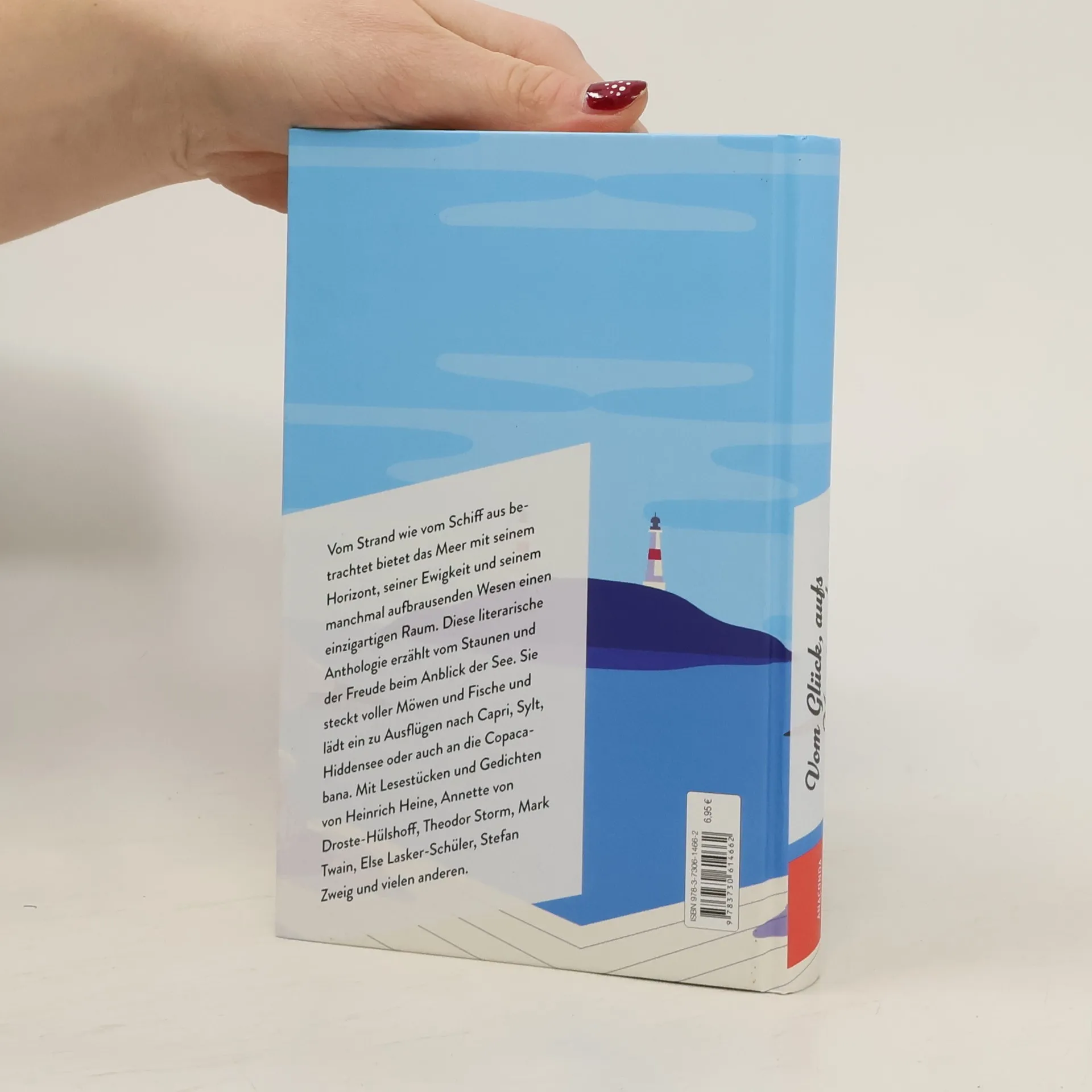 Vom Strand wie vom Schiff aus betrachtet bietet das Meer mit seinem Horizont, seiner Ewigkeit und seinem manchmal aufbrausenden Wesen einen einzigartigen Raum. Diese literarische Anthologie erzählt vom Staunen und der Freude beim Anblick der See. Sie steckt voller Möwen und Fische und lädt ein zu Ausflügen nach Capri, Sylt, Hiddensee oder auch an die Copacabana. Mit Lesestücken und Gedichten von Heinrich Heine, Annette von Droste-Hülshoff, Theodor Storm, Mark Twain, Else Lasker-Schüler, Stefan Zweig und vielen anderen. Beglückend wie ein Tag am Meer »Das Meer, ein magischer Ort, Wo die Träume der Wellen sich finden und fallen.« Emily Dickinson Was gibt es Schöneres, als aufs Meer zu schauen? Lesen, wie Literaten die Weite, Naturgewalt und Freiheit in Worte fassen! Die große Vielfalt: sorgfältig ausgesuchte Gedichte und Geschichten
