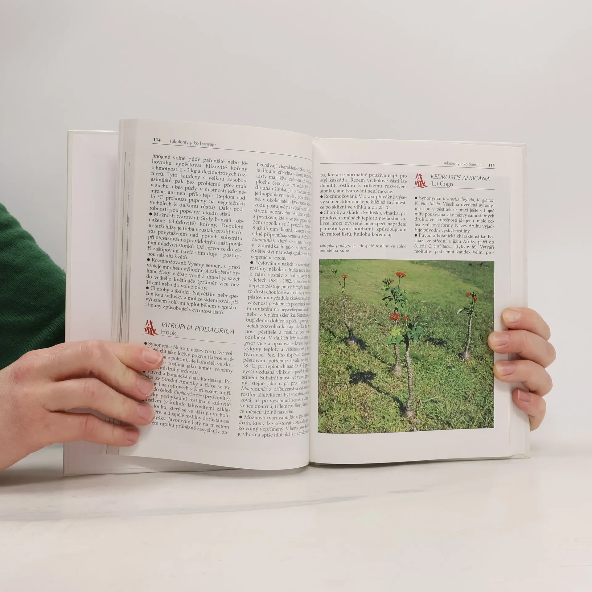 Způsoby pěstování vybraných druhů sukulentních rostlin, které jsou vhodné do suchých bytů a je možné je tvarovat jako bonsaje. Kromě podrobného popisu 120 nekaktusových sukulentů, osvědčených pěstitelských postupů, námětů a ukázek tvarování kniha přináší i fotografie druhů ve volné přírodě v Africe a Mexiku.