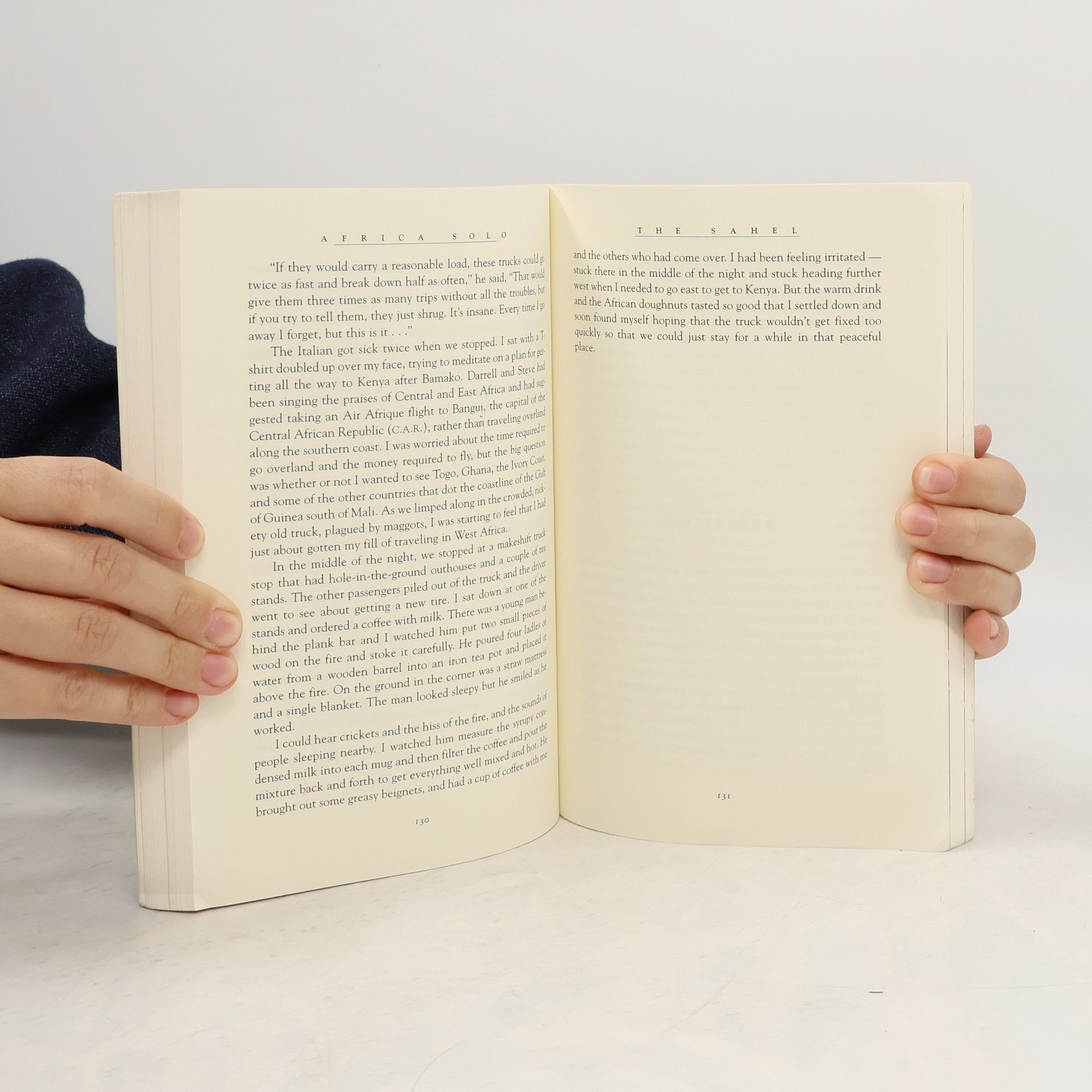 The author chronicles the events of his journey across the African continent, describing encounters with Tuareg traders, shy Pygmies, disillusioned aid workers, and angry gorillas