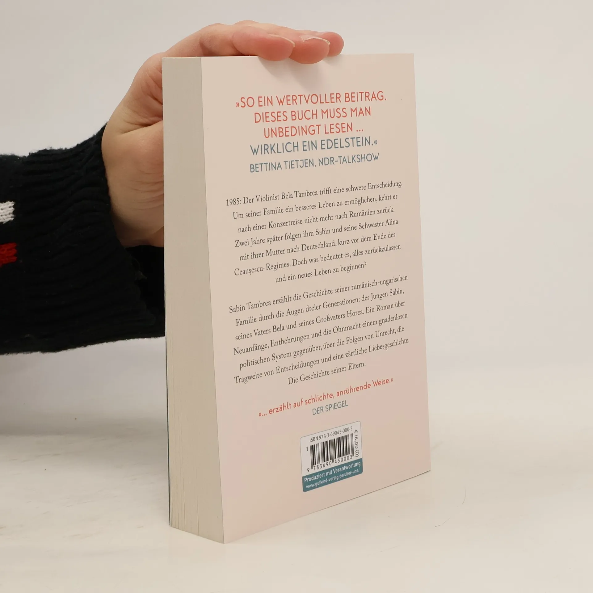 Der große, warme Roman von Bestseller-Autor Sabin Tambrea - eine berührende Geschichte von Liebe, Mut und dem Zusammenhalt einer Familie In seinem mitreißenden Roman Vaterländer erzählt Bestseller-Autor und Filmstar Sabin Tambrea die bewegende Lebensgeschichte seiner rumänisch-ungarischen Familie. Durch die Augen dreier Generationen - des jungen Sabin, seines Vaters Béla und seines Großvater Horea - erleben wir eine emotionale Zeit voller Entbehrungen, Hoffnungen und Entscheidungen, die das Schicksal einer Familie für immer verändern. 1985 trifft Béla Tambrea die schwere Entscheidung, sein Heimatland Rumänien nach einer Konzertreise zu verlassen, um seiner Familie ein besseres Leben zu ermöglichen. Dieser mutige Schritt führt dazu, dass seine Familie zwei Jahre später ebenfalls nach Deutschland zieht, kurz bevor das Ceauceșcu-Regime blutig zusammenbricht. Doch der Neuanfang in einem fremden Land bringt nicht nur Freiheit, sondern auch große Entbehrungen und bodenlose Einsamkeit mit sich. Tambrea entfaltet vor unseren Augen die Auswirkungen eines gnadenlosen politischen Systems auf das Leben gewöhnlicher Menschen. Er beschreibt die Ohnmacht gegenüber Unrecht, die Tragweite von Entscheidungen und die Sehnsucht nach Selbstbestimmung. Gleichzeitig erzählt er von einer Liebesgeschichte, die zeigt, wie stark eine Familie zusammenhalten kann, selbst in dunkelsten Zeiten. Mit großer sprachlicher Kraft nimmt Sabin Tambrea uns mit auf eine Reise durch die turbulenten Ereignisse des 20. Jahrhunderts. Vaterländer ist nicht nur die Geschichte seiner Familie, sondern auch ein eindrucksvolles Zeugnis der menschlichen Stärke und des Überlebenswillens in einer Welt im Wandel. Bei Fragen zur Produktsicherheit, wenden Sie sich bitte an: info@gutkind-verlag.de