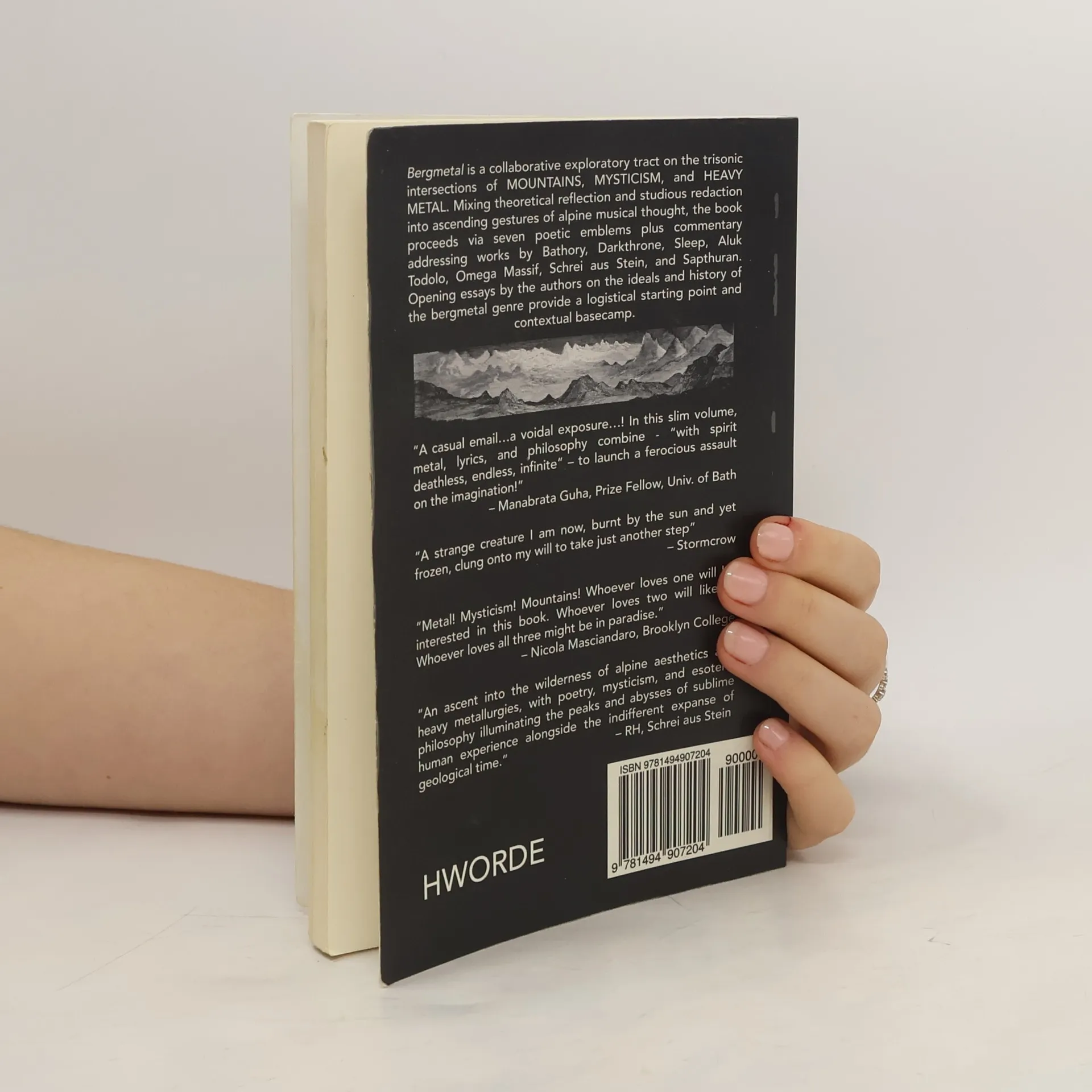 Bergmetal is a collaborative exploratory tract on the trisonic intersections of MOUNTAINS, MYSTICISM, and HEAVY METAL. Mixing theoretical reflection and studious redaction into ascending gestures of alpine musical thought, the book proceeds via seven poetic emblems plus commentary addressing works by Bathory, Darkthrone, Sleep, Aluk Todolo, Omega Massif, Schrei aus Stein, and Sapthuran. Opening essays by the authors on the ideals and history of the bergmetal genre provide a logistical starting point and contextual basecamp.