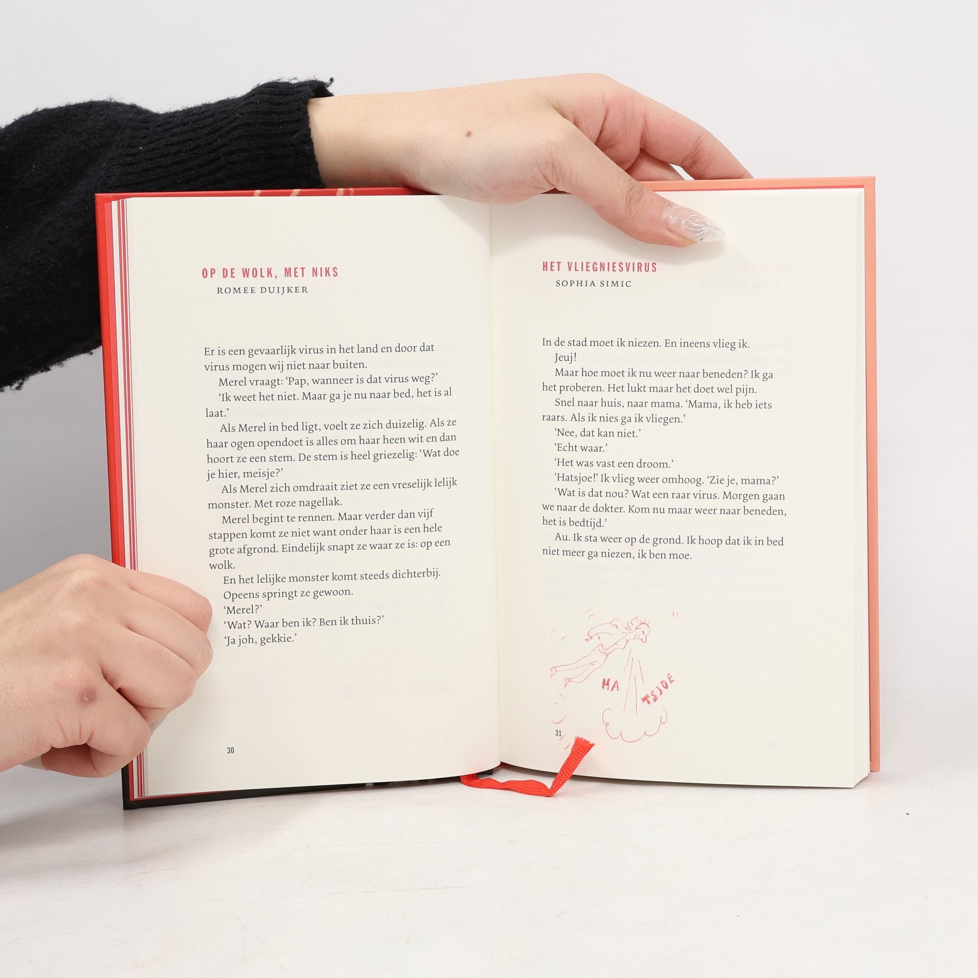 Kinderen uit Amsterdam vertellen over de gevolgen van Corona voor hun dagelijkse leven. In verhalen, gedichten en andere teksten komen o.a. hun angst en boosheid naar voren, maar ook de humor en hoop. Met kleine pentekeningen in een rode kleur. Vanaf ca. 8 t/m 12 jaar.