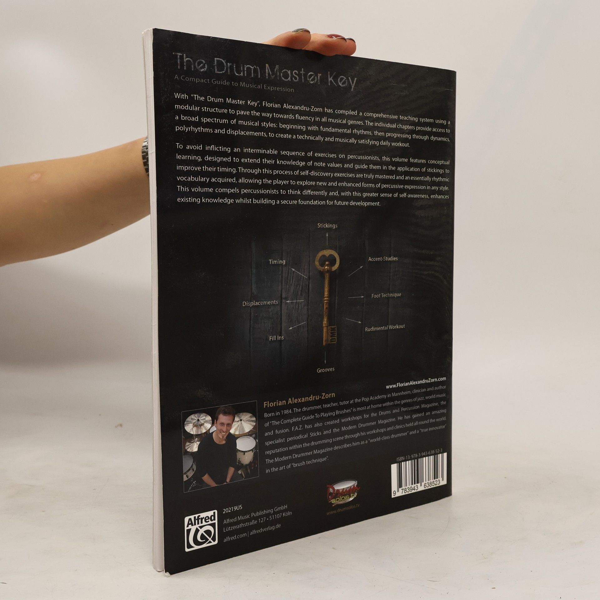 With The Drum Master Key, Florian Alexandru-Zorn has compiled a comprehensive teaching system using a modular structure to pave the way towards fluency in all musical genres. The individual chapters provide access to a broad spectrum of musical styles beginning with fundamental rhythms, and progressing through dynamics, polyrhythms, and displacements to create a technically and musically satisfying daily workout.To avoid inflicting an interminable sequence of exercises on percussionists, this volume features conceptual learning, designed to extend their knowledge of note values and guide them in the application of stickings to improve their timing. Through this process of self-discovery, exercises are truly mastered and an essentially rhythmic vocabulary are acquired, allowing the player to explore new and enhanced forms of percussive expression in any style.This volume compels percussionists to think differently and with this greater sense of self-awareness, enhancing existing knowledge while building a secure foundation for future development.Florian Alexandru-Zorn has developed a personal and systematic approach to developing his rhythmic vocabulary on the drumset. With The Drum Master Key, Florian has documented his concepts in great detail and they are now available for like-minded drummers who wish to expand their rhythmic awareness and abilities. Steve Smith (Vital Information/Journey)