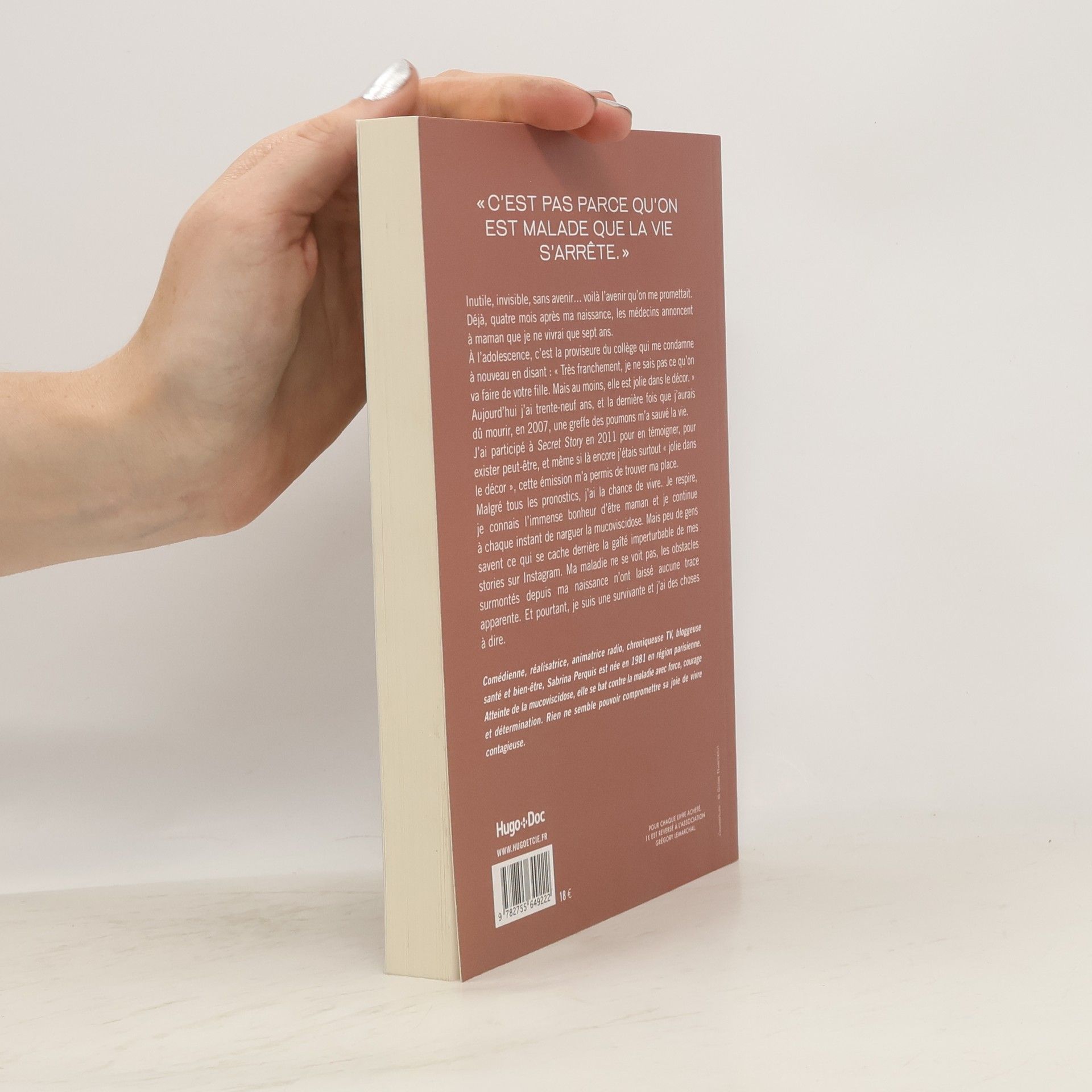« C'EST PAS PARCE QU'ON EST MALADE QUE LA VIE S'ARRÊTE. » Inutile, invisible, sans avenir voilà l'avenir qu'on me promettait. Déjà, quatre mois après ma naissance, les médecins annoncent à maman que je ne vivrai que sept ans. À l'adolescence, c'est la proviseure du collège qui me condamne à nouveau en disant : « Très franchement, je ne sais pas ce qu'on va faire de votre fille. Mais au moins, elle est jolie dans le décor. »Aujourd'hui j'ai trente-neuf ans, et la dernière fois que j'aurais dû mourir, en 2007, une greffe des poumons m'a sauvé la vie. J'ai participé à Secret Story en 2011 pour en témoigner, pour exister peut-être, et même si là encore j'étais surtout « jolie dans le décor », cette émission m'a permis de trouver ma place. Malgré tous les pronostics, j'ai la chance de vivre. Je respire, je connais l'immense bonheur d'être maman et je continue à chaque instant de narguer la mucoviscidose. Mais peu de gens savent ce qui se cache derrière la gaîté imperturbable de mes stories sur Instagram. Ma maladie ne se voit pas, les obstacles surmontés depuis ma naissance n'ont laissé aucune trace apparente. Et pourtant, je suis une survivante et j'ai des choses à dire.