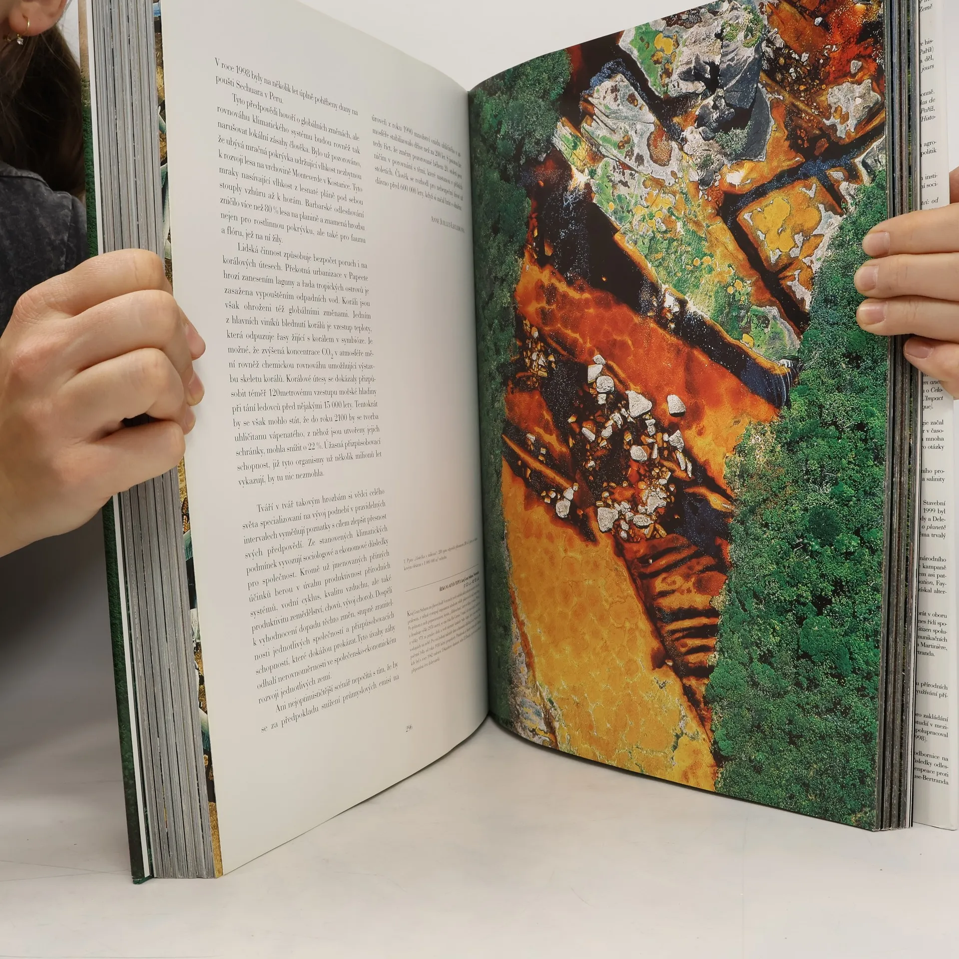 Kniha je výsledkem desetileté práce a statisíců kilometrů cestování, dokumentující stav naší planety na konci 2. tisíciletí. Obsahuje 11 kapitol, které se věnují jak nedotčené přírodě, tak stopám lidské činnosti, přetváření přírodního prostředí a ničení přírodních zdrojů. Uvádí fotografie krajiny, kam lidská noha ještě nevkročila, vedle snímků z přelidněných měst. Praktické uspořádání knihy zahrnuje 15 velkých fotografií na dvou stránkách, doplněných čtyřstránkovými texty s informacemi o jednotlivých snímcích. Každá záložka obsahuje mapu světa s označením místa pořízení fotografie. Kapitoly provází úvahy o vztahu lidí k přírodě a sobě navzájem, reflektující změny na planetě z přírodního, politického a sociálního hlediska. Autoři poukazují na propastné rozdíly v bohatství mezi severem a jihem, například v roce 1960 byl příjem nejbohatší pětiny třicetkrát vyšší než u nejchudší. V kapitole o Brazílii se zmiňuje o situaci zemědělských dělníků, kterým soukromé armády brání využívat úrodnou půdu. Kniha končí návrhem na řešení krize světové populace, zdůrazňující vzdělání, zdravotní péči a udržitelný rozvoj. Letecké snímky vytvářejí pocit spoluzodpovědnosti za osud planety a ukazují měřítko přírodních útvarů. I když manipulace s těžkou knihou není snadná, její obsah a fotografie jsou inspirující.