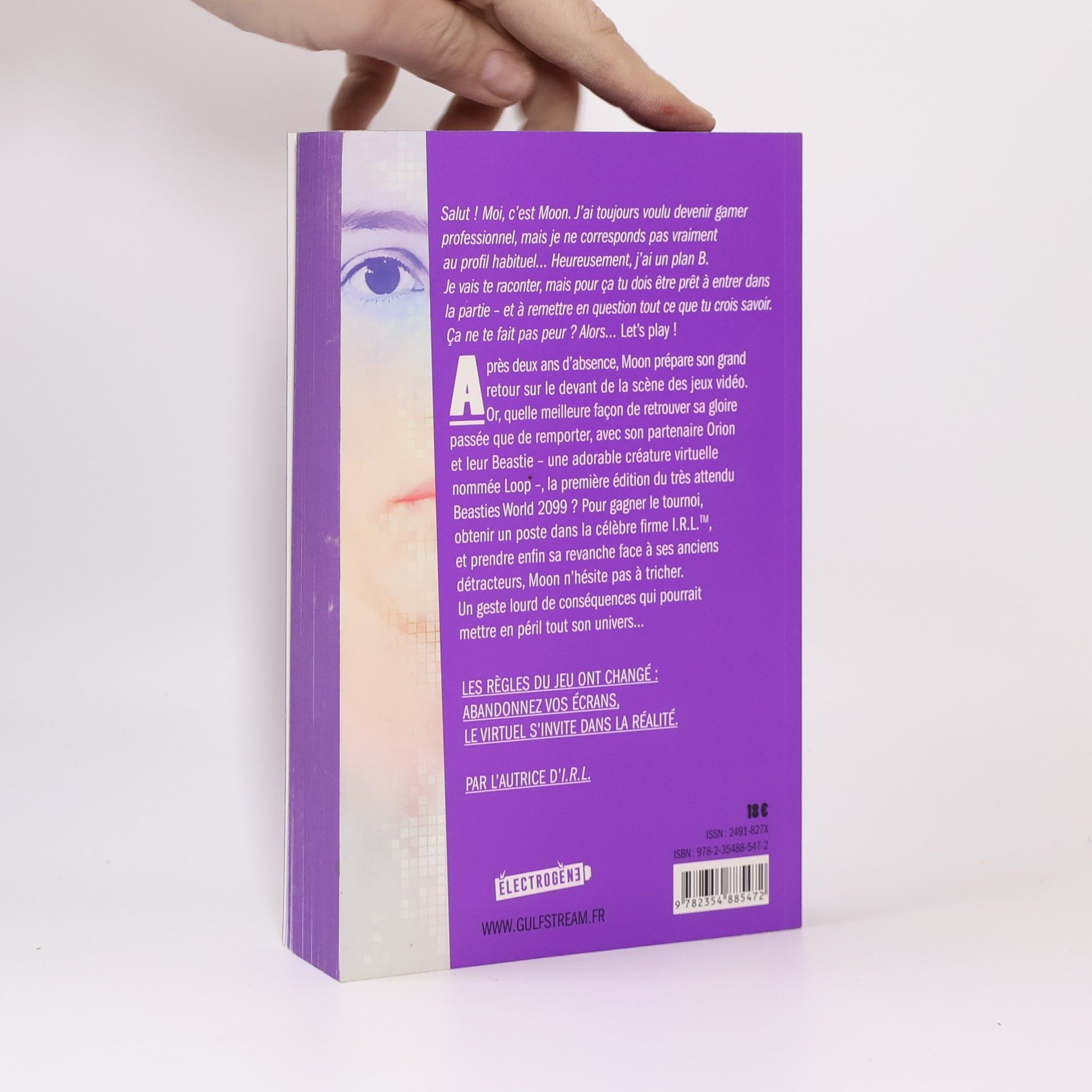 « Salut ! Moi, c’est Moon. J’ai toujours voulu devenir gamer professionnel, mais ce n’était pas aussi simple… Disons que je ne corresponds pas vraiment au profil habituel. C’est pas grave, j’ai un plan B. Je n’aurai besoin que d’Orion – ma moitié dans la vie comme dans le jeu – et de Loop, notre adorable petite boule de poils orange qui fait "pouic". (Ça ne s’invente pas.) Bref, je vais te raconter, mais pour ça tu dois être prêt à entrer dans la partie, toi aussi. Ah, et à remettre en question tout ce que tu crois savoir. Ça ne te fait pas peur ? Alors, appuie sur "Commencer une nouvelle partie", tourne la page et… Let’s play ! »