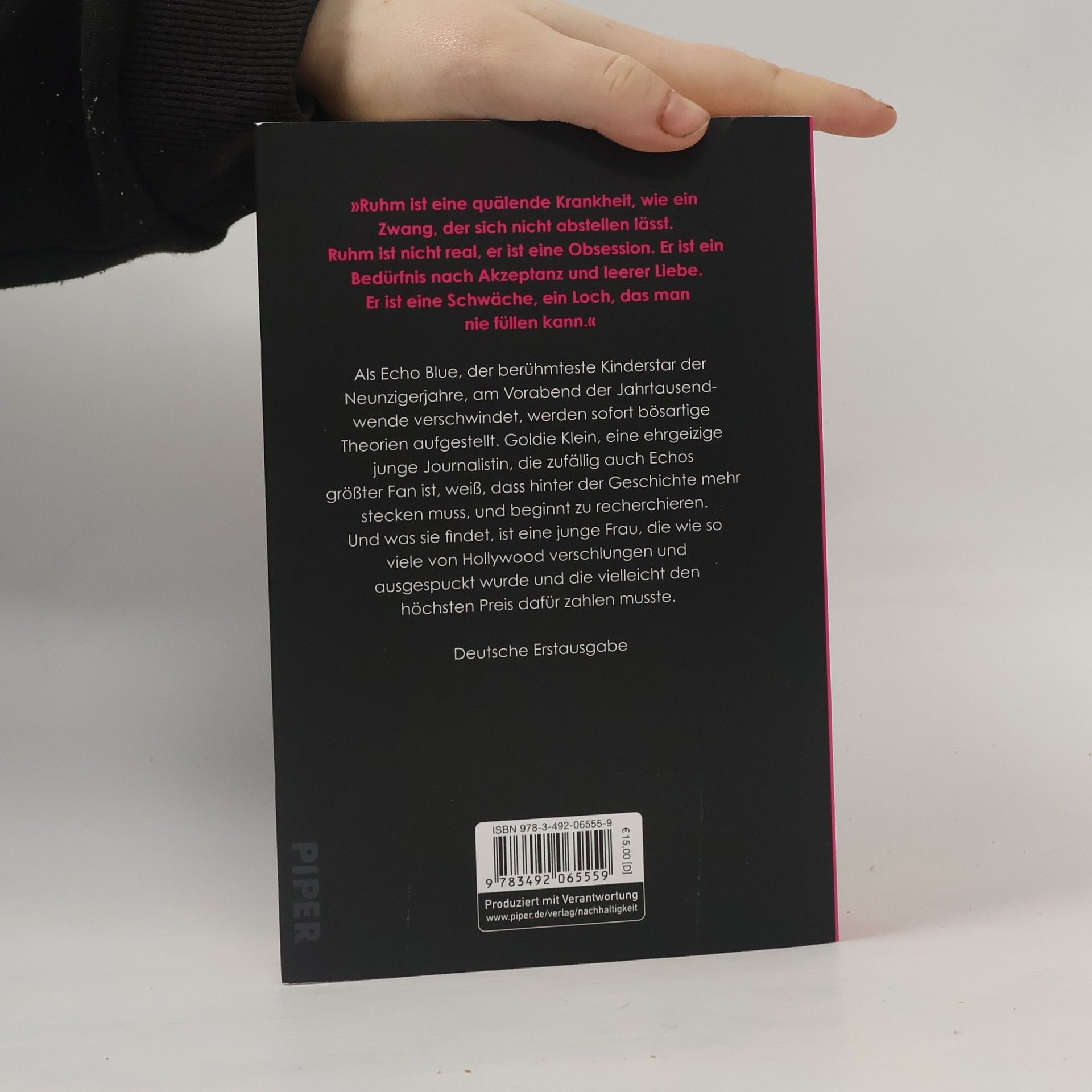 Ein fesselnder Roman über Berühmtheit, Fan-Sein und den Preis des Ehrgeizes, der von der obsessiven Suche einer Journalistin nach einem verschwundenen Hollywood-Starlet handelt. Als Echo Blue, der berühmteste Kinderstar der Neunzigerjahre, am Vorabend der Jahrtausendwende verschwindet, werden sofort bösartige Theorien aufgestellt. Goldie Klein, eine ehrgeizige junge Journalistin, die zufällig auch Echos größter Fan ist, weiß, dass hinter der Geschichte mehr stecken muss, und beginnt zu recherchieren. Und was sie findet, ist eine junge Frau, die wie so viele von Hollywood verschlungen und ausgespuckt wurde und die vielleicht den höchsten Preis dafür zahlen musste.