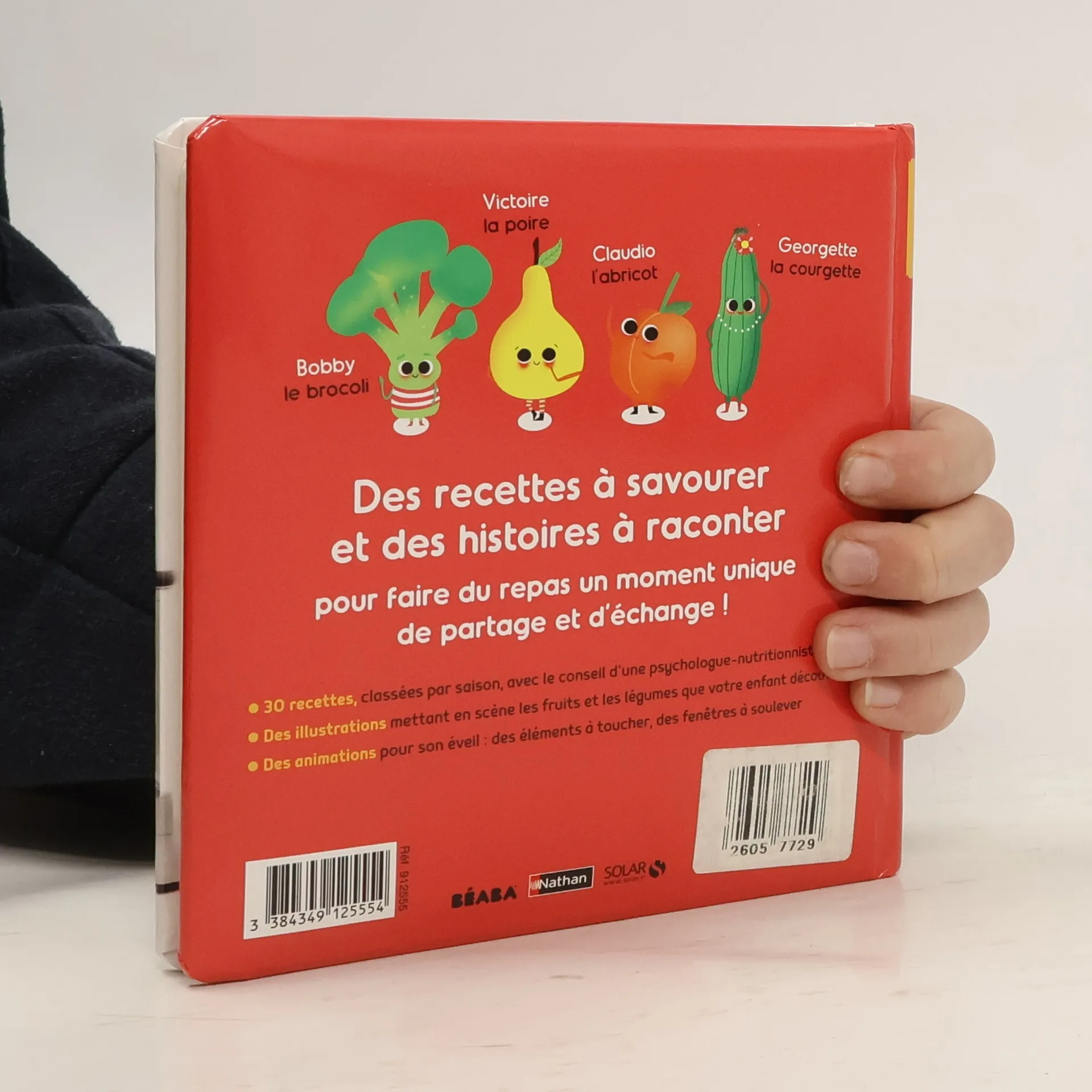 Quand on pense à l'alimentation du bébé, on pense au fait de bien le nourrir : lui donner des aliments adaptés à ses possibilités, qu'il peut supporter, et qui vont lui permettre d'assumer une bonne croissance. Mais l'acte alimentaire va bien au-delà : le repas dans son temps de préparation, comme dans celui de l'ingestion, est un lieu unique pour parler à son enfant, raconter son histoire, ses goûts, utiliser les aliments. Dans cet ouvrage : - 30 recettes pour les enfants de 4 à 6 mois, classées par saison, avec pour chacune d'elle le conseil de la psychologue-nutritionniste pour une double approche de la diversification alimentaire. - Pour 15 recettes, une scénette illustrée mettant en scène les fruits et les légumes que l'enfant découvre. - Des animations pour favoriser l'éveil de l'enfant : des matières à toucher, des fenêtres à soulever. - Des annexes ultrapratiques pour les parents : menus, tableau des fruits et des légumes de saison, liste de course, tableau des portions, etc.